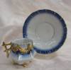 Small porcelain cup and saucer.  Cobalt blue with heavy gold trim.  Has a blue makers mark on the base of the cup and saucer.  I would like to know if anyone knows this makers mark.