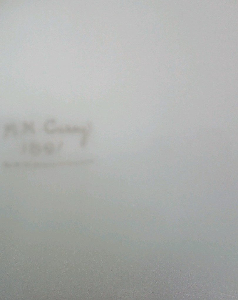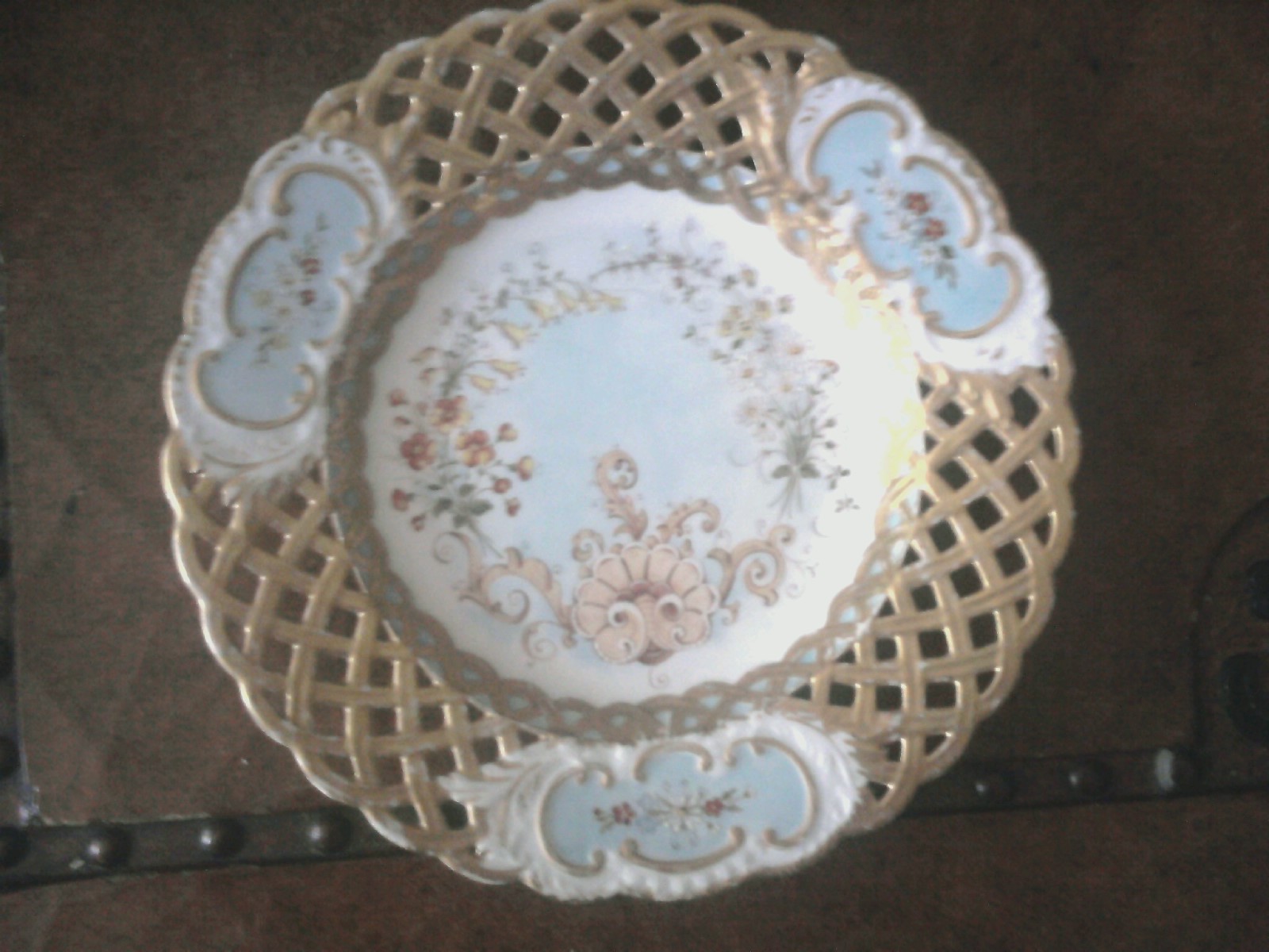 gold and floral design, may be handpainted has raised paint on flowers. back has handwriiten M.M.Casey 1891