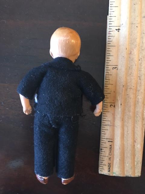 4 inch antique porcelain boy doll in a tuxedo. Over 50 years old.