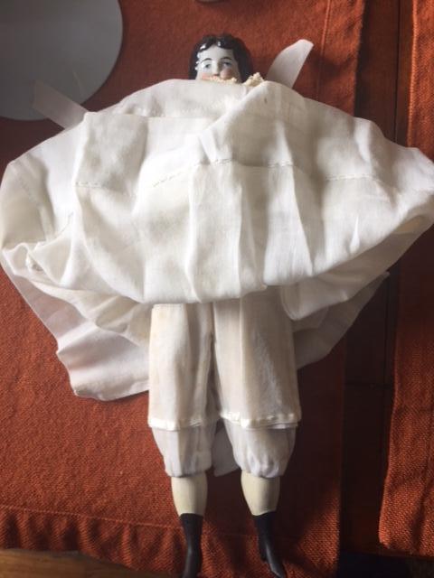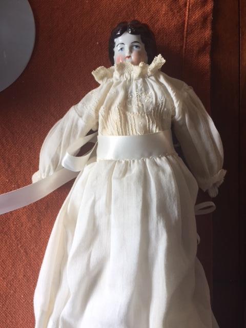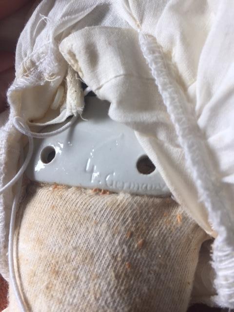 Porcelain Doll, Early 1900's. Clothing by Feltman Brothers. Stamped 4.Germany on back