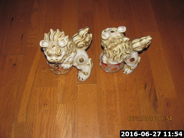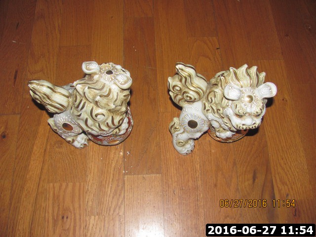 A set of chinese guardian lions that is a vintage figuring, white and beige. Extremly detailed with gold accents.