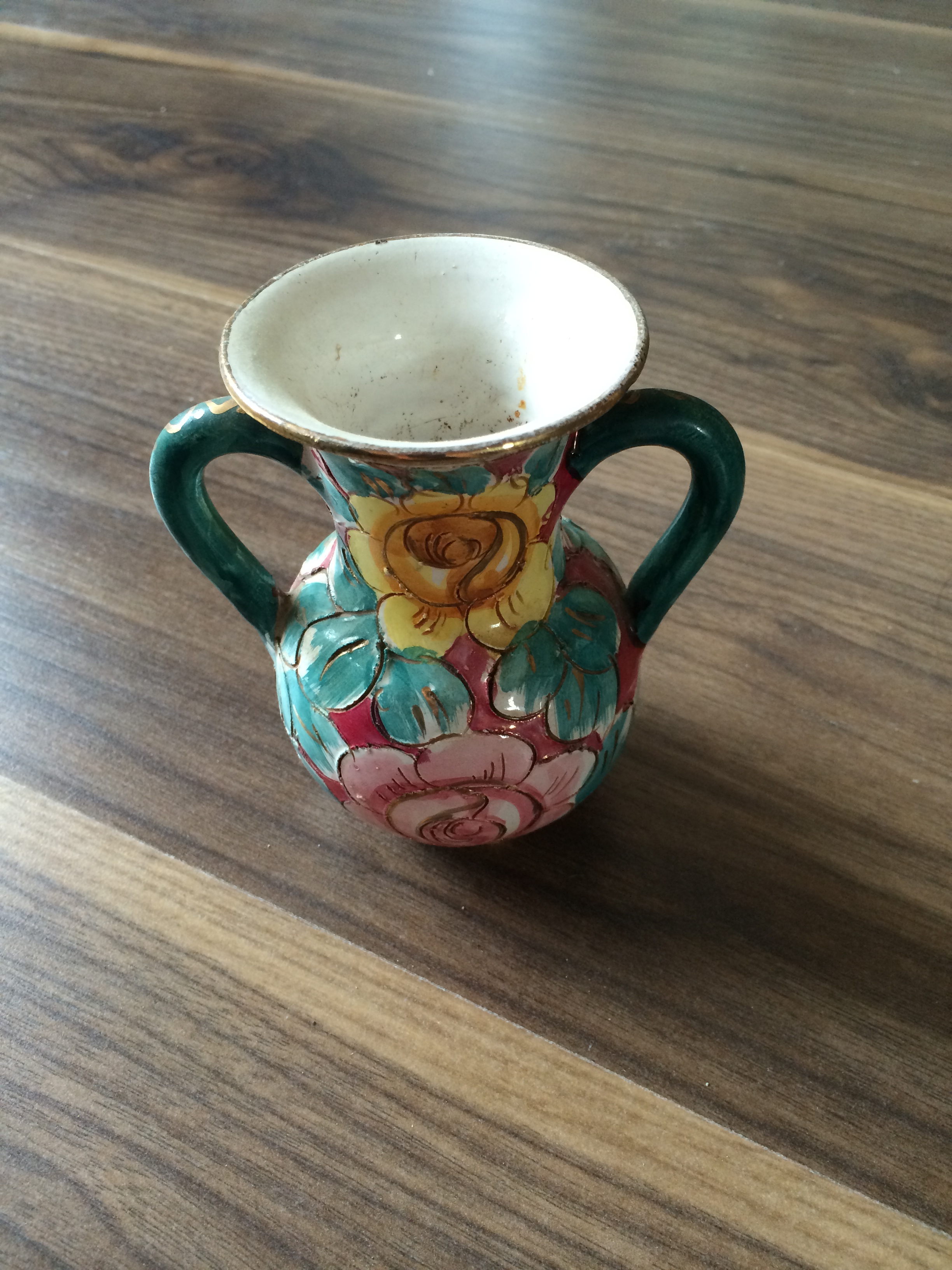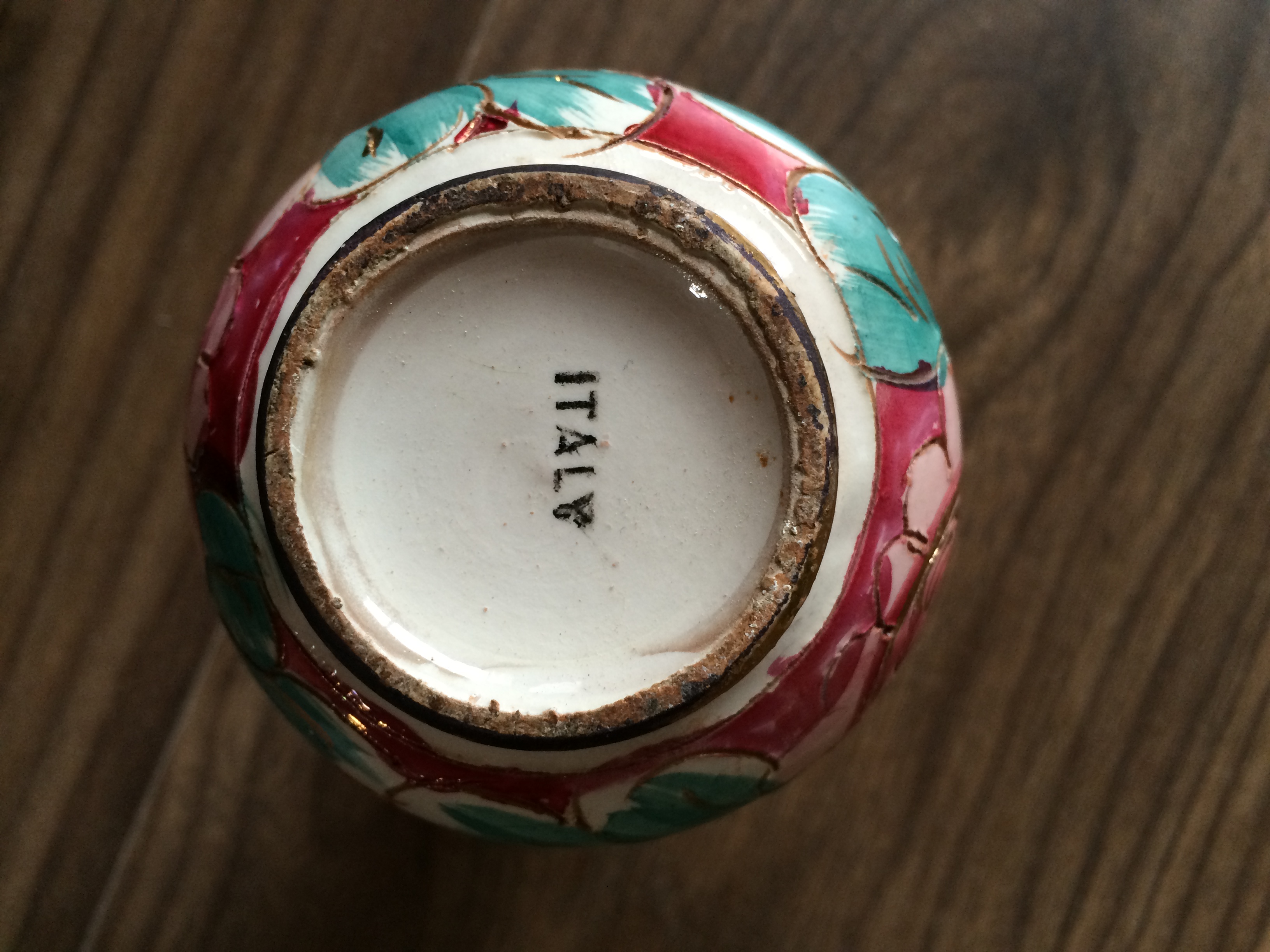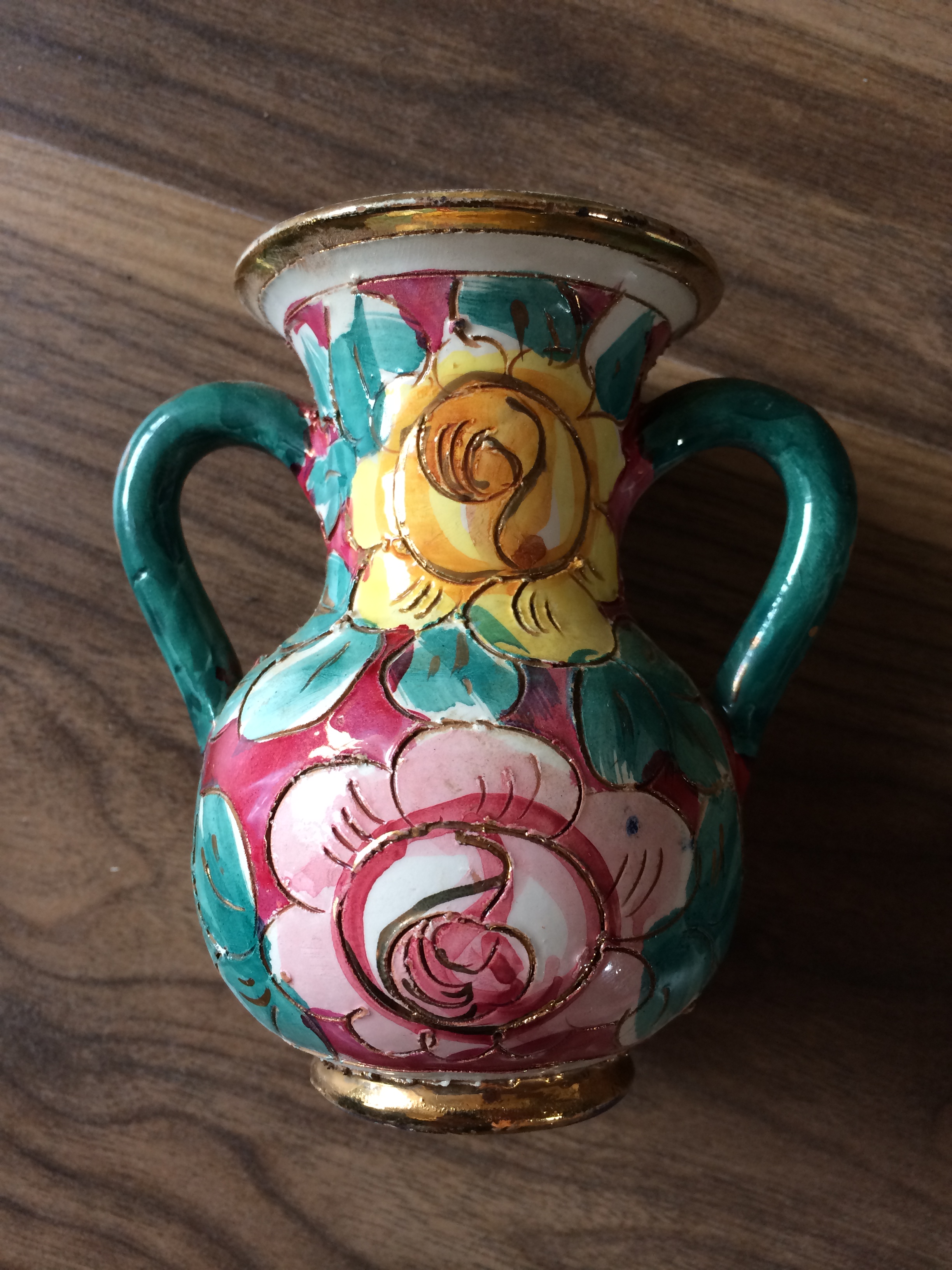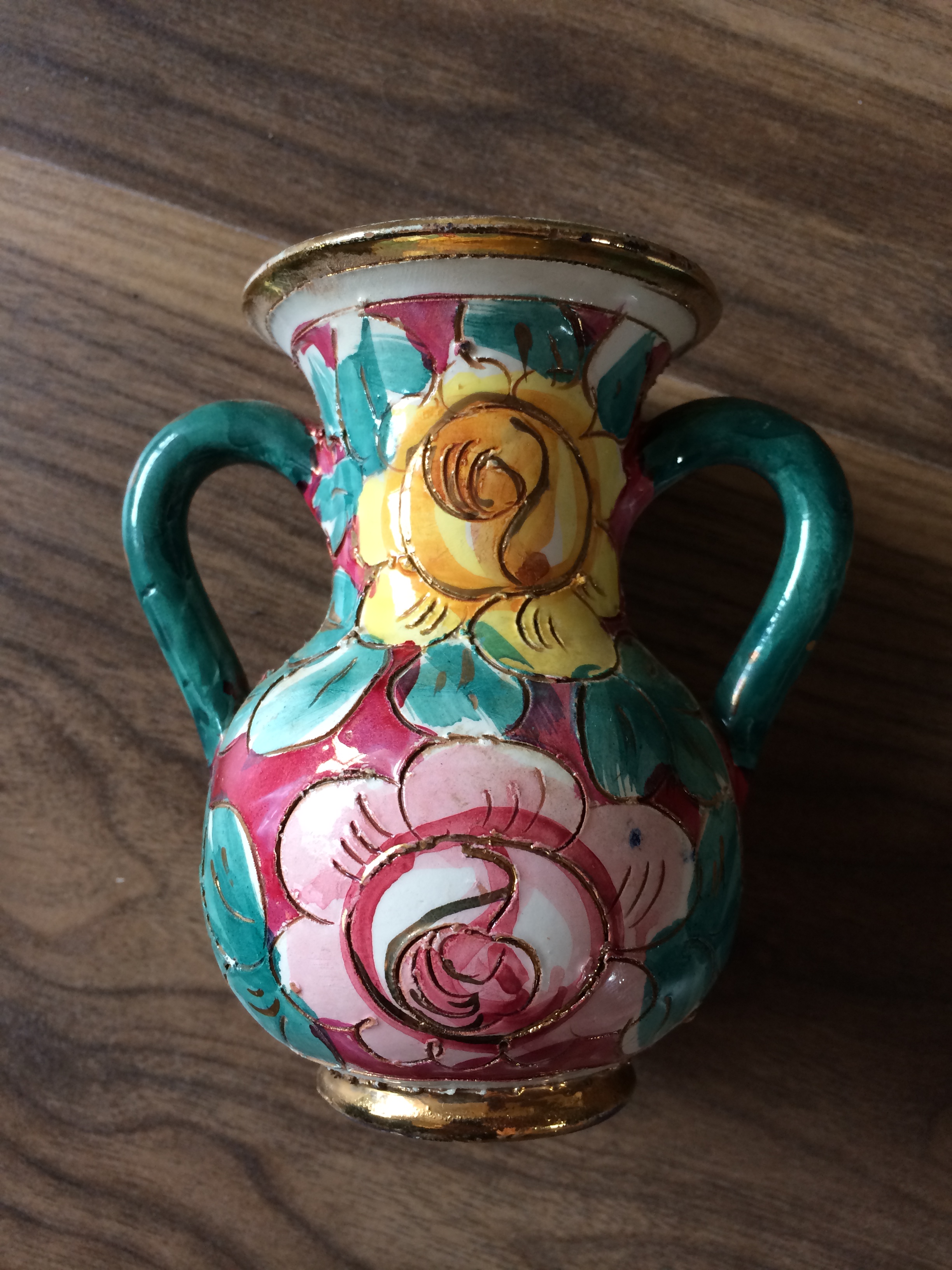 The outline of the flowers feel like they were etched or carved into the jug then painted over.