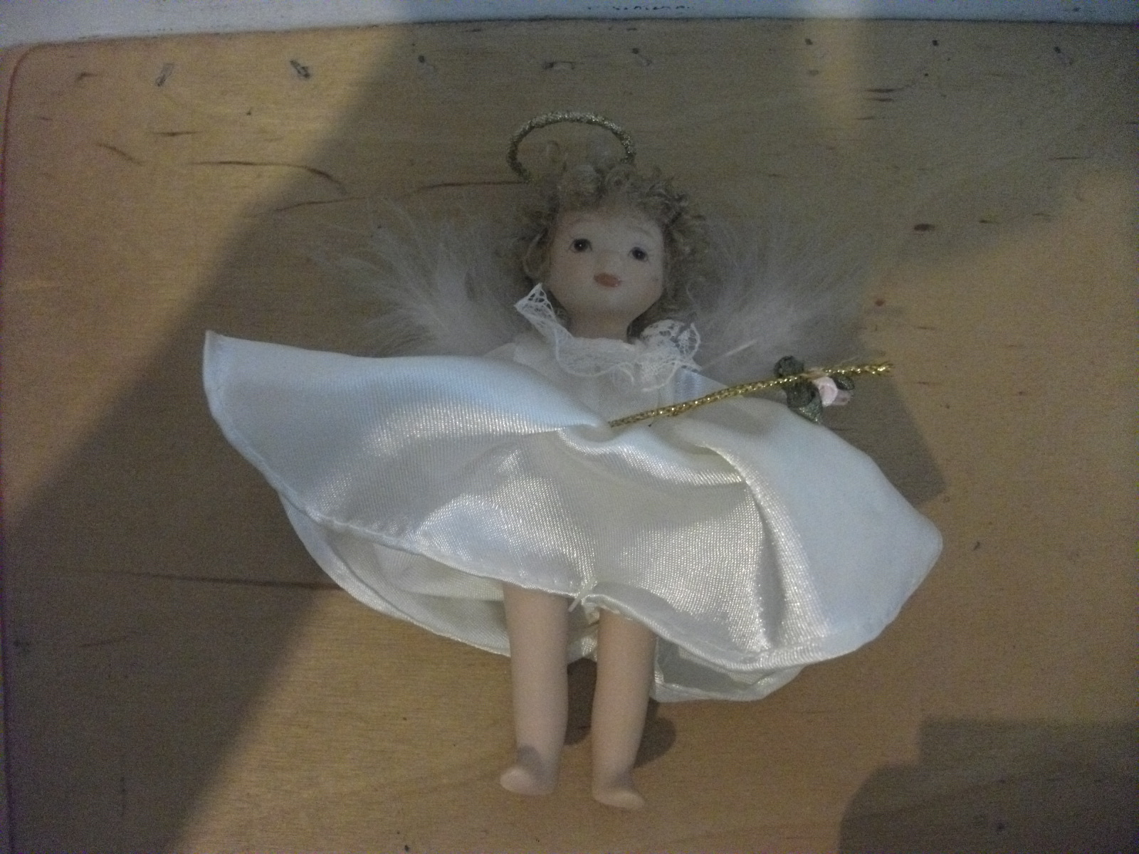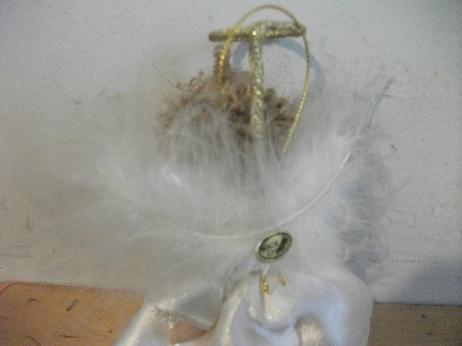 Porcelain Angel Ornament Doll with feather wings.