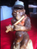 This item is a porcelain piece of a boy playing a flute. It is 1' in height and 1' in diameter and 5'' in width. It is in perfect condition.It was obtained in Germay during WW II around 1944-45.There is a mark on the underside shaped like a medieval shield with a coat of arms.