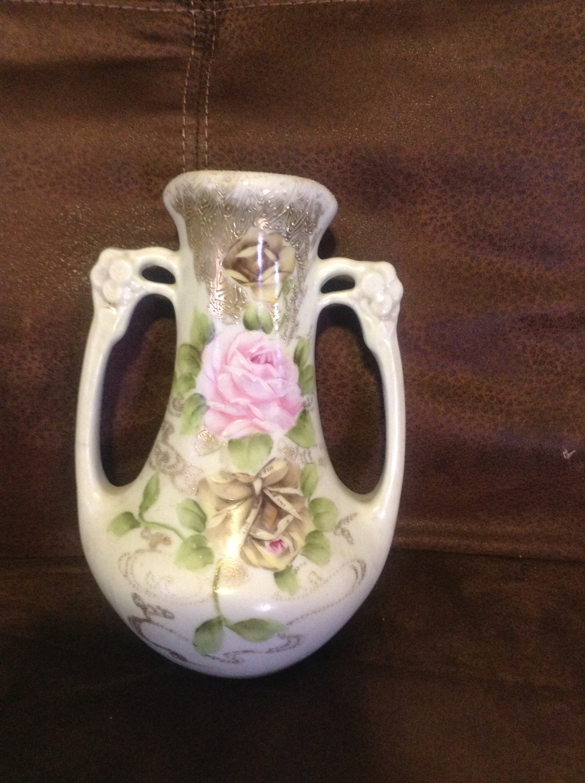 porcelain vase hand painted with gold paint