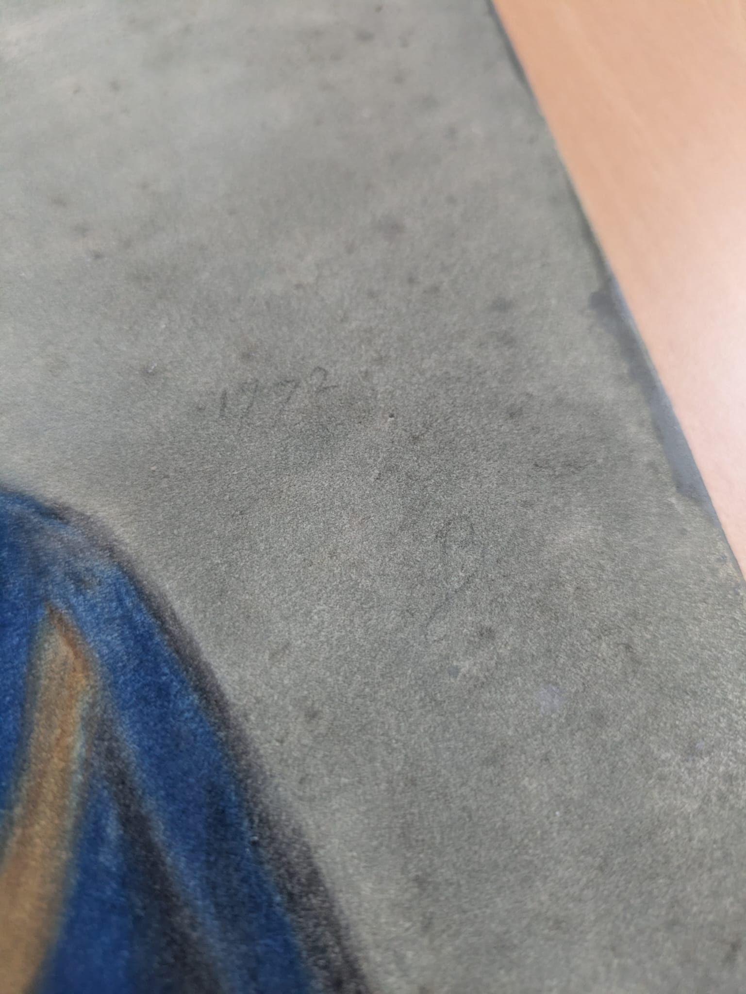 The date inscribed (1772) provides a clear indication of the artwork's age. The use of pastel and the style of the uniform are consistent with portraiture from this period, particularly in Europe.