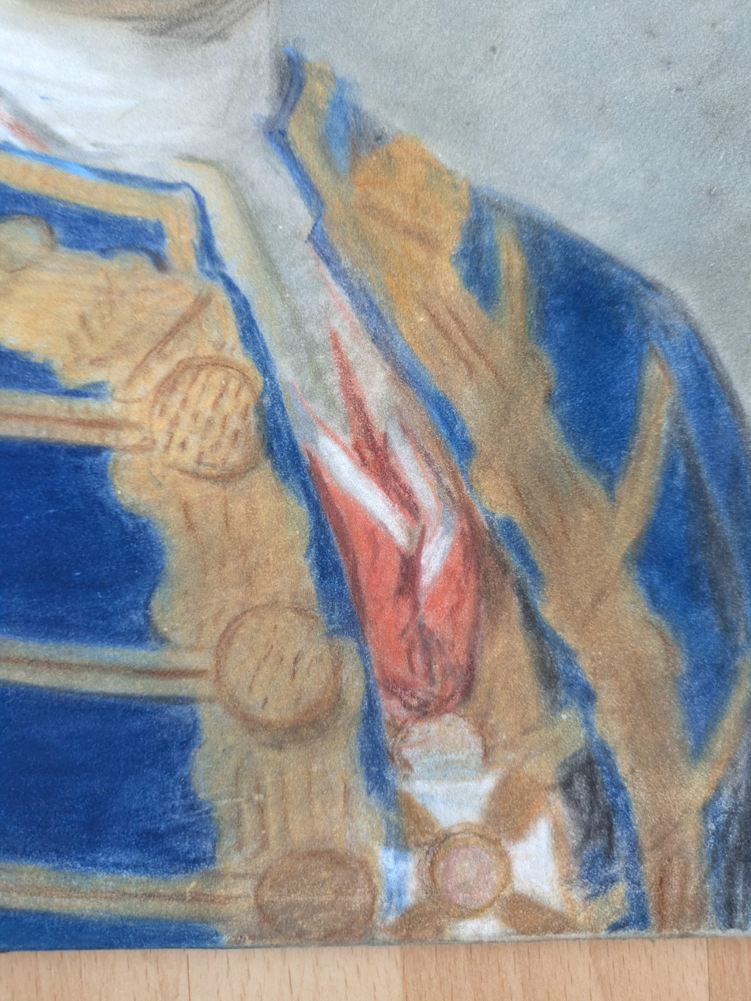 The artist remains unidentified, as there are no visible signatures or marks. However, the style and technique suggest it may belong to the late 18th century, a period known for portraiture in pastel. Artists of this era often focused on capturing the likeness and status of their subjects, particularly in military attire.