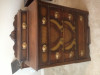 So I am new to this sort of thing. This piece is what looks almost like a 2 door bureau. As it turns out it actually pulls out and becomes a 6 foot long table. I think it is pretty old but am not sure. the tag on the back says taylor-jamestown coorperation #840, Article-triplex and the finish is cherry. That is all I have on this and any help or interest in it would be much appreciated. In the attached photo it is not pulled out the entire way and the leafs are not in place although I do have them.