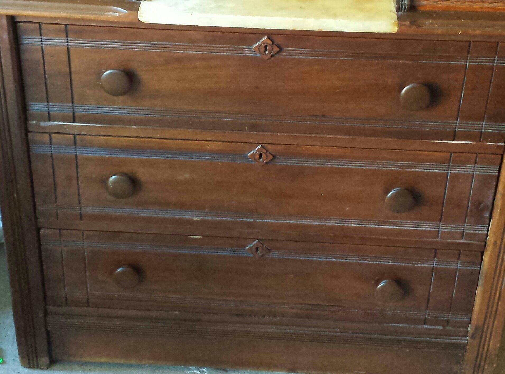 Hello I am new to antiques and my girlfriend and I are trying to learn more. I bought this piece at an estate auction and I think its an eastlake piece by the looks of the drawers. I believe its dated from 1890 to 1900 from the pin cove dove tails on the drawers. I think its in good condition for its age. I do not see any repairs or refinishing . Im not sure but I think it may have had a mirror with it maybe but I dont know. I dont know the name of it. Could be just a 3 drawer chest. Or possibly used as a bar. I believe it may be a walnut. On the back I can read the stamp armstrong furniture. Ill look more when I have better light. 14 is slso stamped in the middle. The site doesnt allow me to put the good pics in. If ud like more pics please email me [email protected] id really like to know more about the piece and value. Thanks in advance