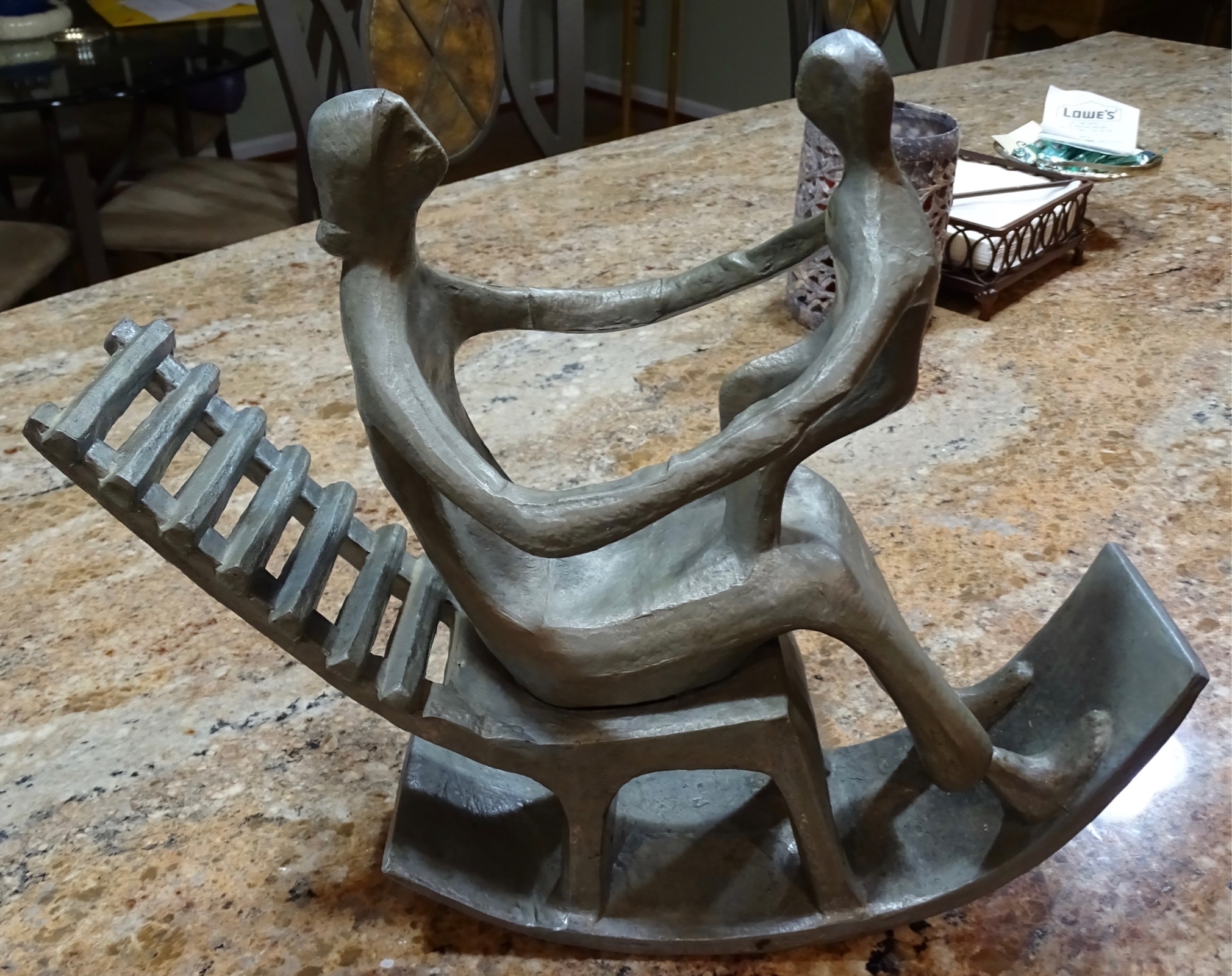 I read on the internet Henry Moore did some late work in iron and wondering if this could possibly be one of his late Rocking Chair sculptures.