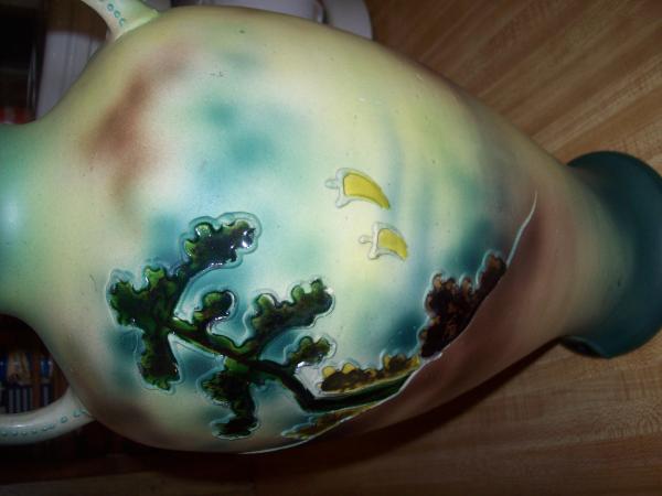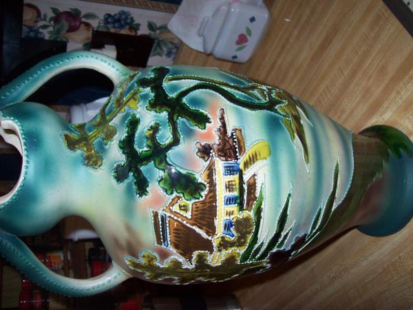 Appro. 17" high possible Nippon Vase. Beaded artistry, Japanese pre 1921, porcelain intereior, textured exterior. High gloss finishes. Unmarked but with Japanese symbols on back.