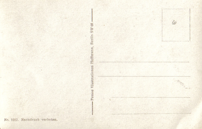 Distinguishing marks uncancelled postcard by "Presse Illustratien Hoffman, Berlin SW 68"