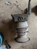 A "GLOW" cast iron pot belly stove. We do not know the exact age, but know that it is antique. In fair condition for age we think...??