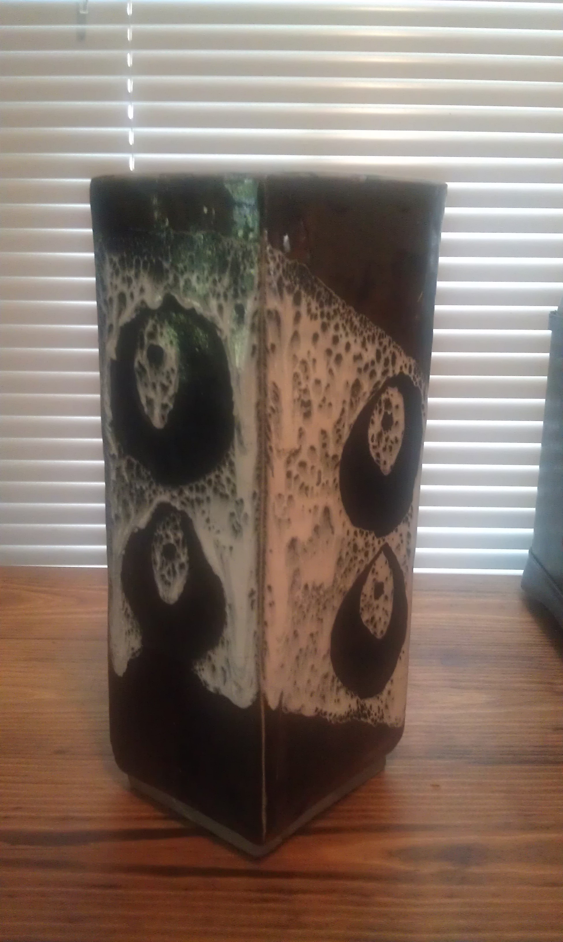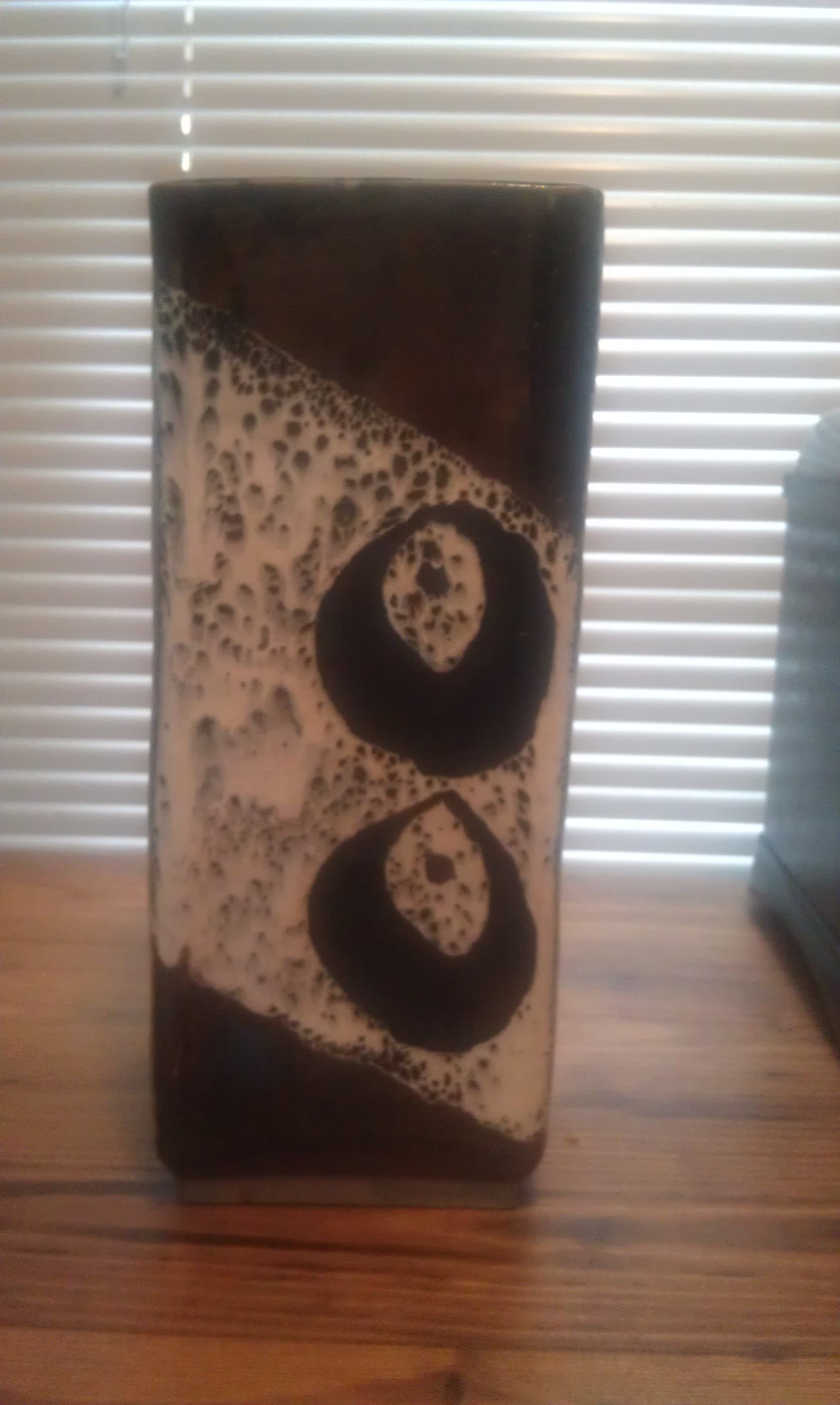 I picked up this piece because it struck me. Now, I am trying to find out as much information as possible about the artist and its value (if any)!?! It is a tall cube vase as you can see and it is marked as follows: PCP 1977- after much research I am still in the dark. Thank you