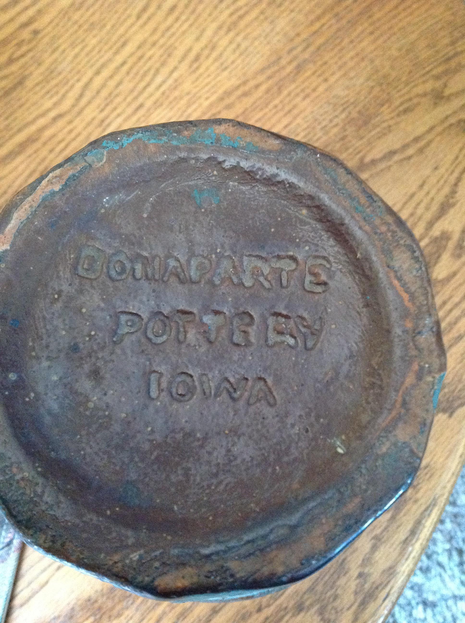 Looks like vase but a seal or cork was used on top. Underneath says bonaparte pottery IowaIowa