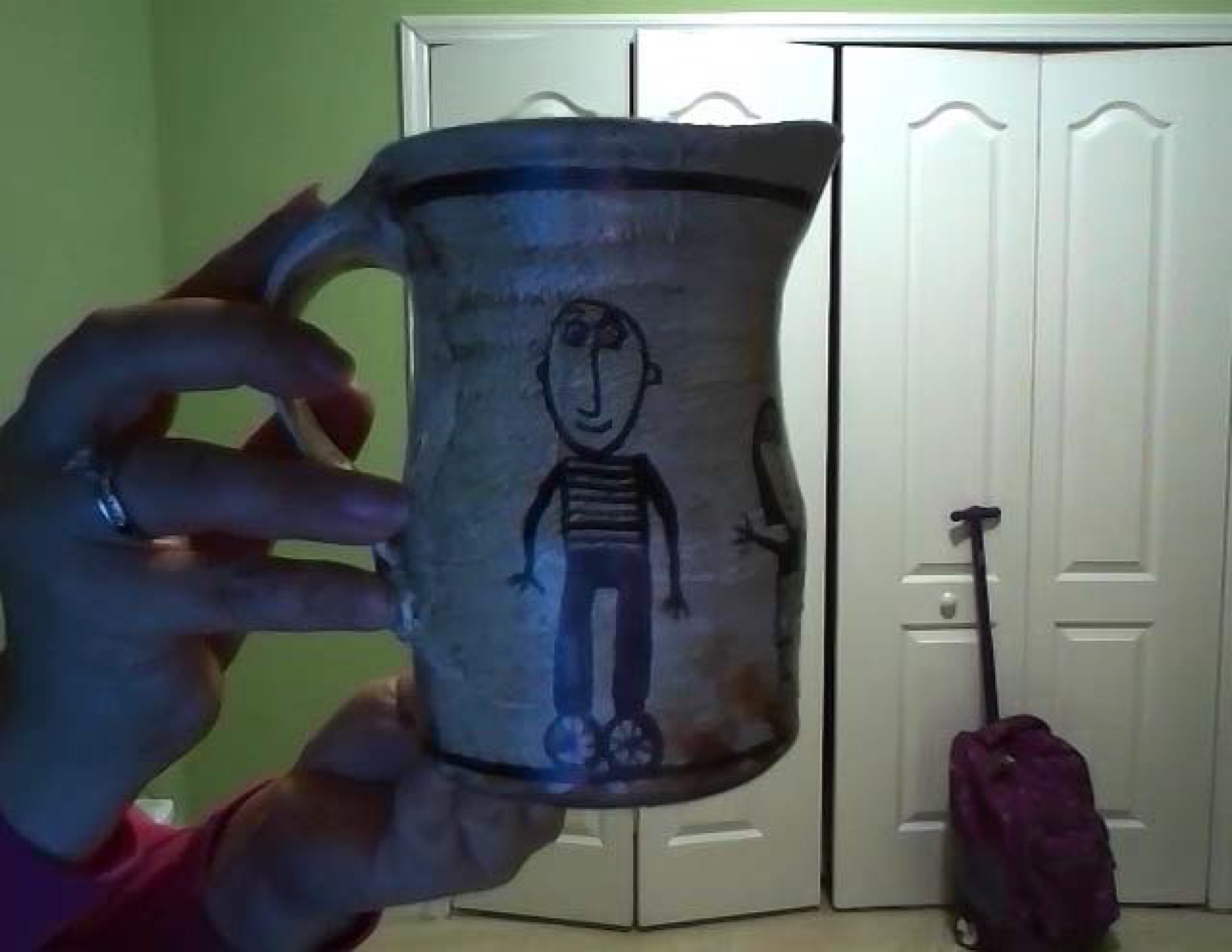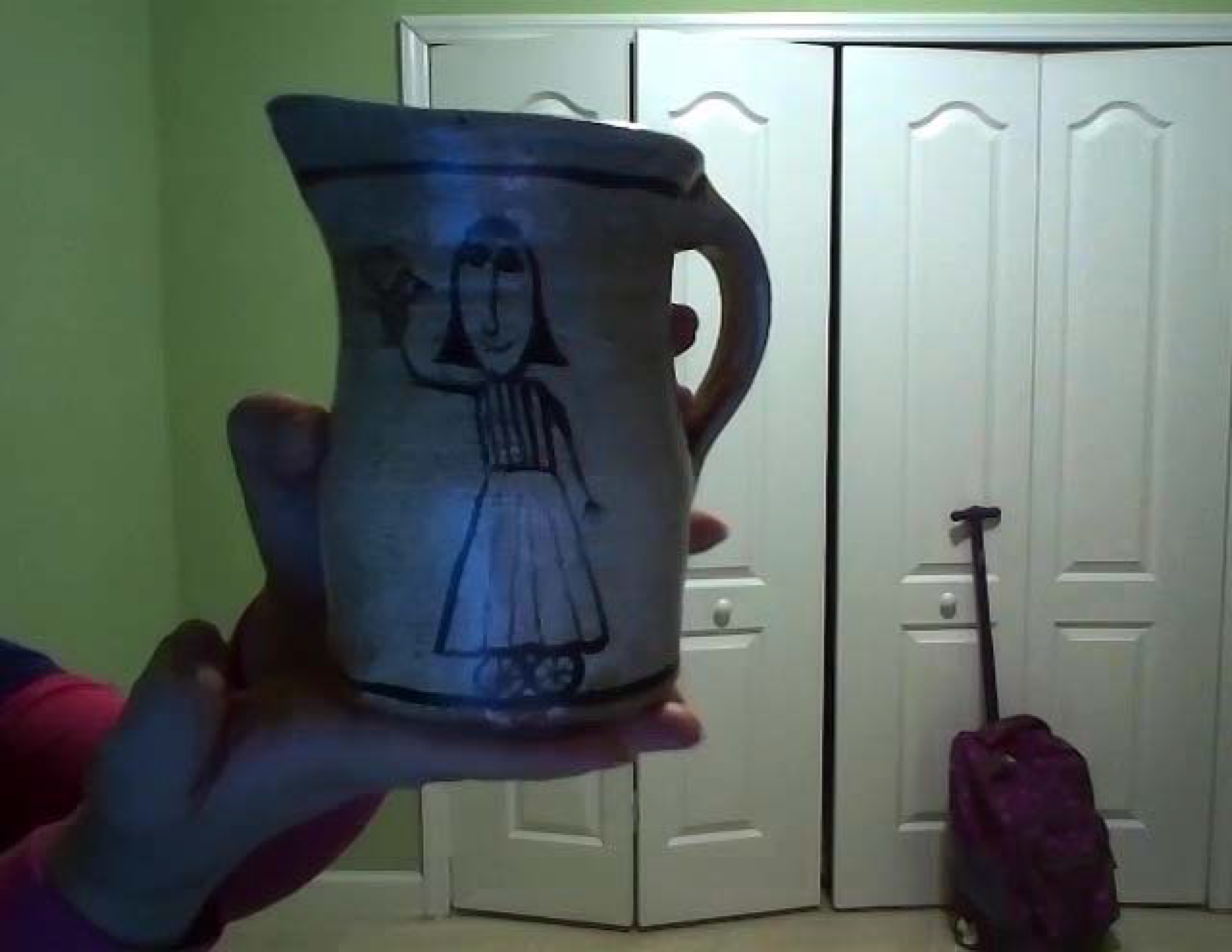 Hi...I was given a clay pitcher with some unique drawings on it. It has, what seems to be, 3 children with wheels for feet. The piece has "JAT" in big capital letters at the bottom. Not sure if it's worth anything, but it's definitely unique.