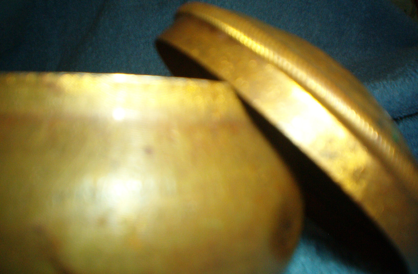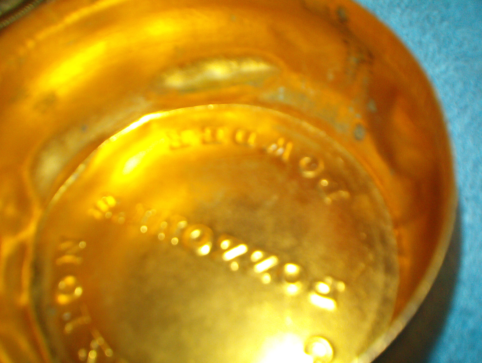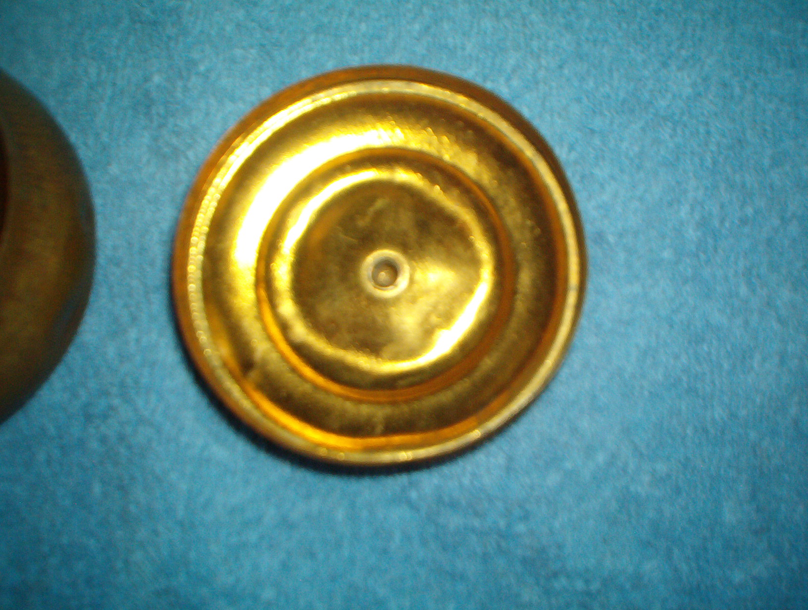 Pozzoni's complexion powder brass container, the gold puff box. It is a small brass round lidded container measures 2.25 inches tall with lid, app. 1.5 inches without lid and app. 3 inches wide. It has a beautiful gold looking finish with a lovely design on the box. It is embossed on the bottom with the words " POZZONI'S COMPLEXION POWDER". This is the container that Scoville designed in 1894 and sold $50,000 worth to the company after a little smarts on his part. The company was using a wooden box. There are a few indentions on the bottom, but I believe they are suppose to be here, they are around the bottom of the outside of the container and seems to be placed there. My container is old and needs to be cleaned up, but I don't know if I should. I cannot find anything anywhere on this container, I did find information on the 1912 container, but it is not this one.