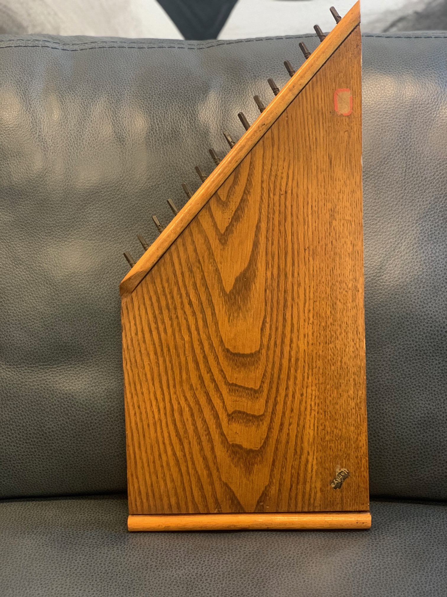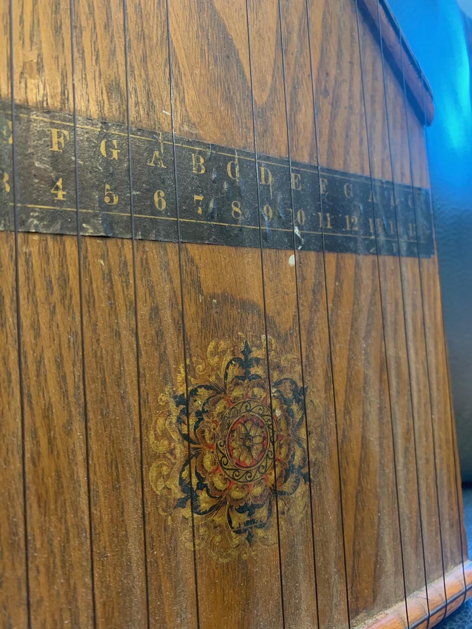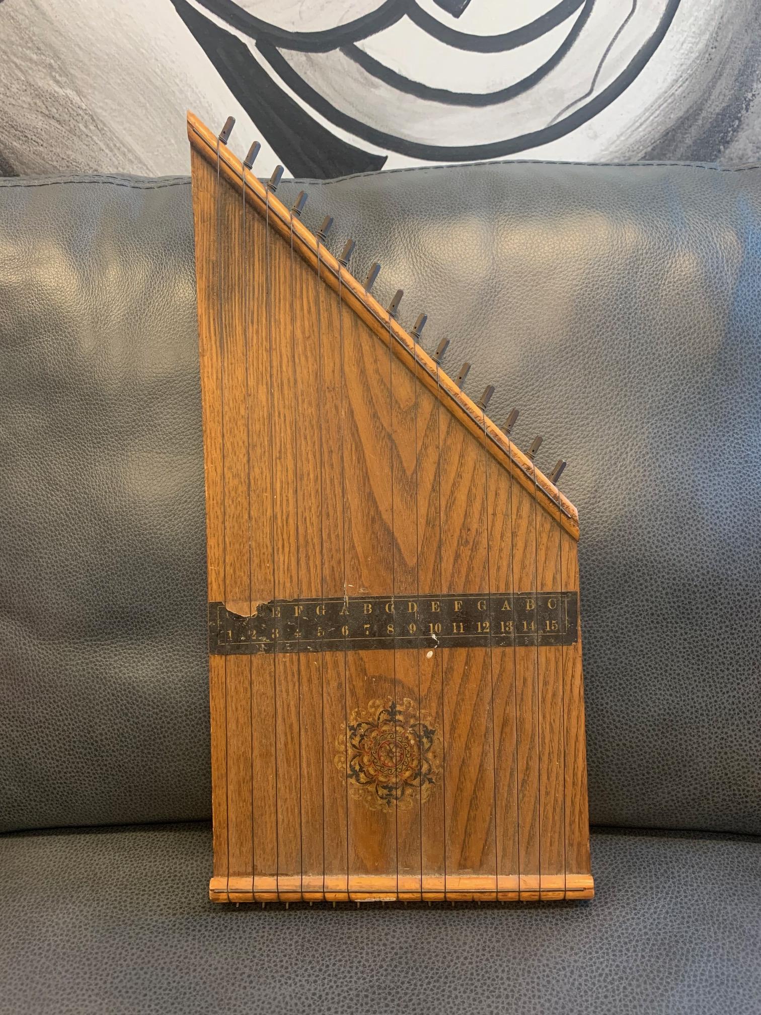 Did a reverse image search to figure out what this instrument is called. It has 15 strings and a guide imposed on the surface that indicates the note each string is supposed to be tuned to. Unlike other lap harps I saw pictures of online, this one does not have a hole in it for acoustics. There's nothing on it that indicates a brand or year. Any ideas on the worth would be greatly appreciated! Thank you for your time.