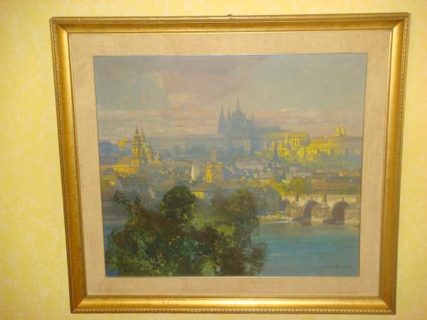 This is a painting of Prague by the painter Jaroslav Setelik (1881-1955). The painting should be the original, though I am not entirely sure. It was purchased in Prague in 1977.
