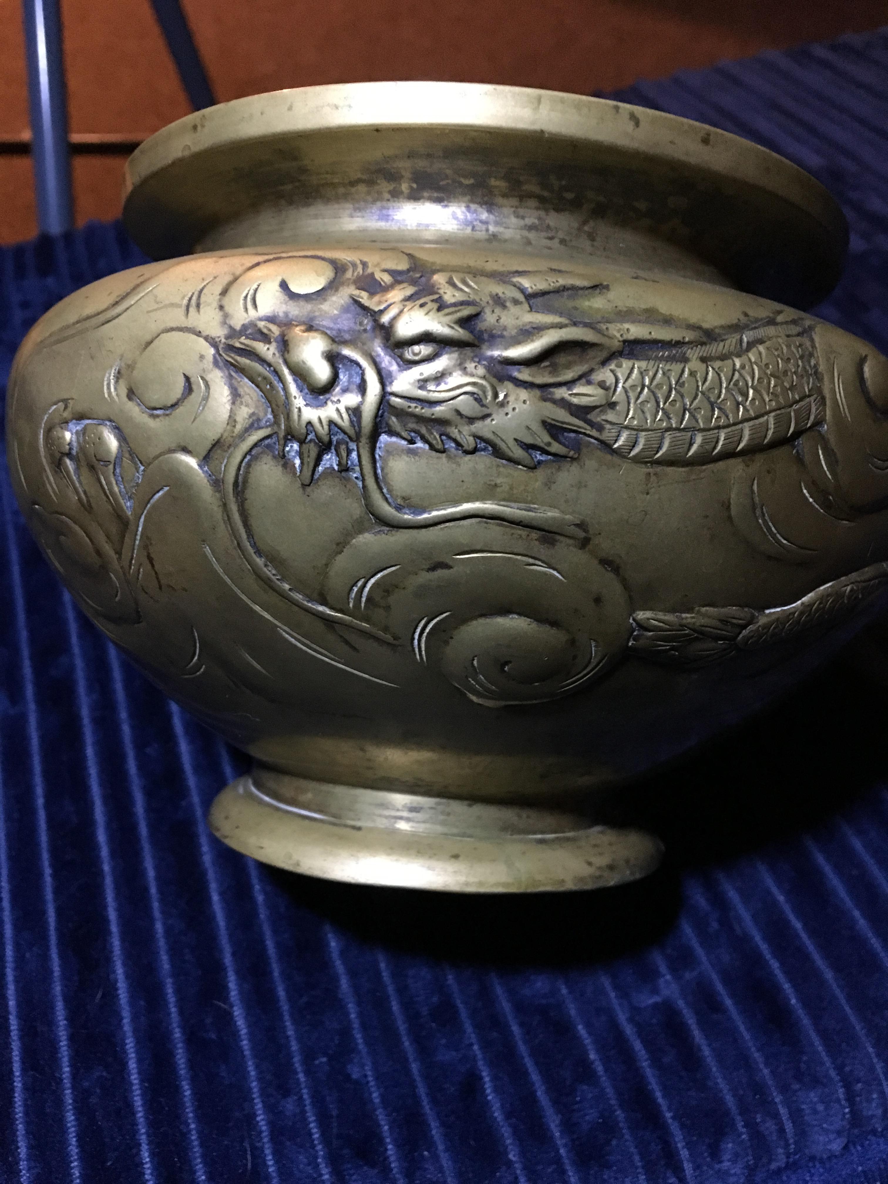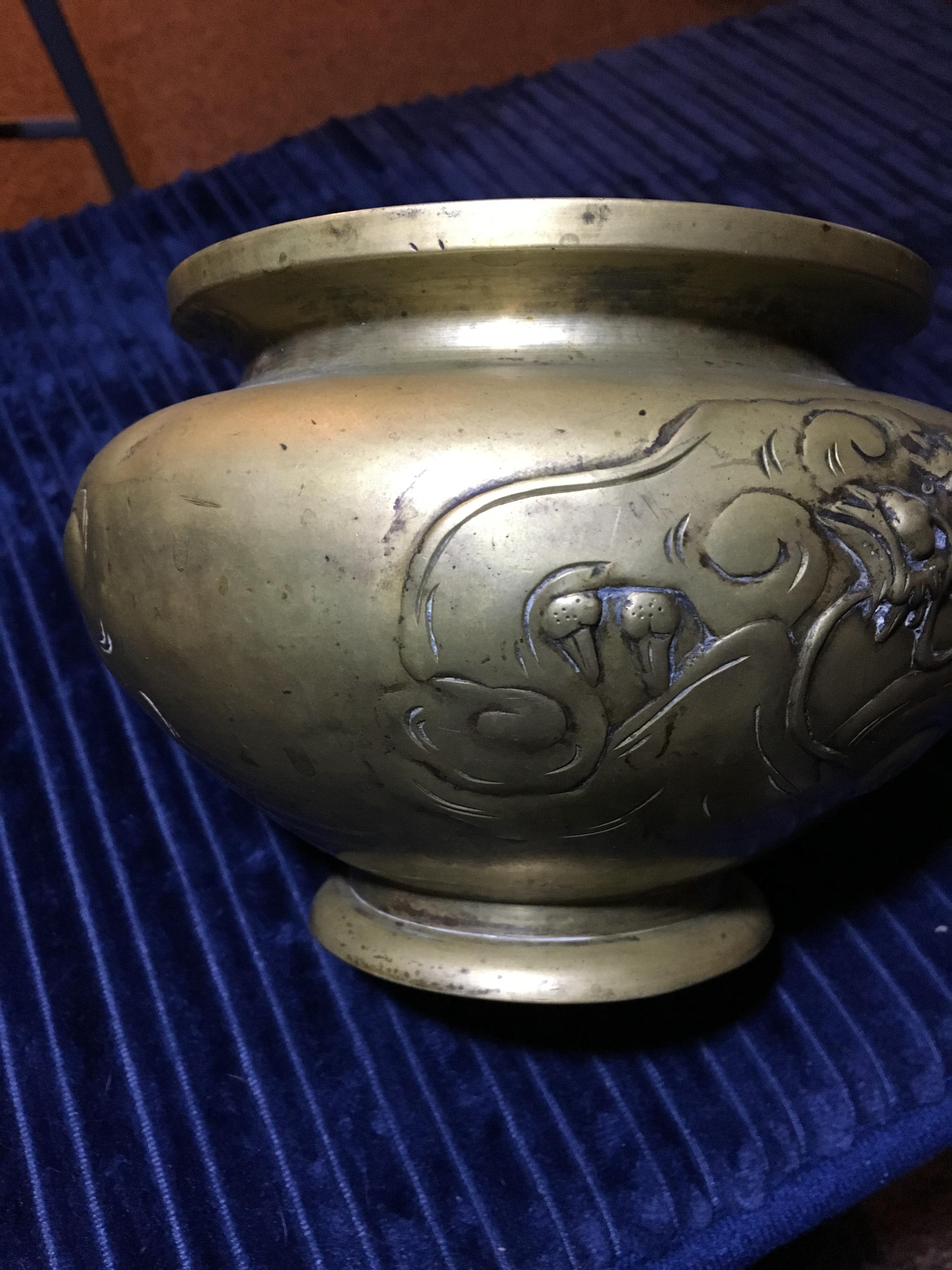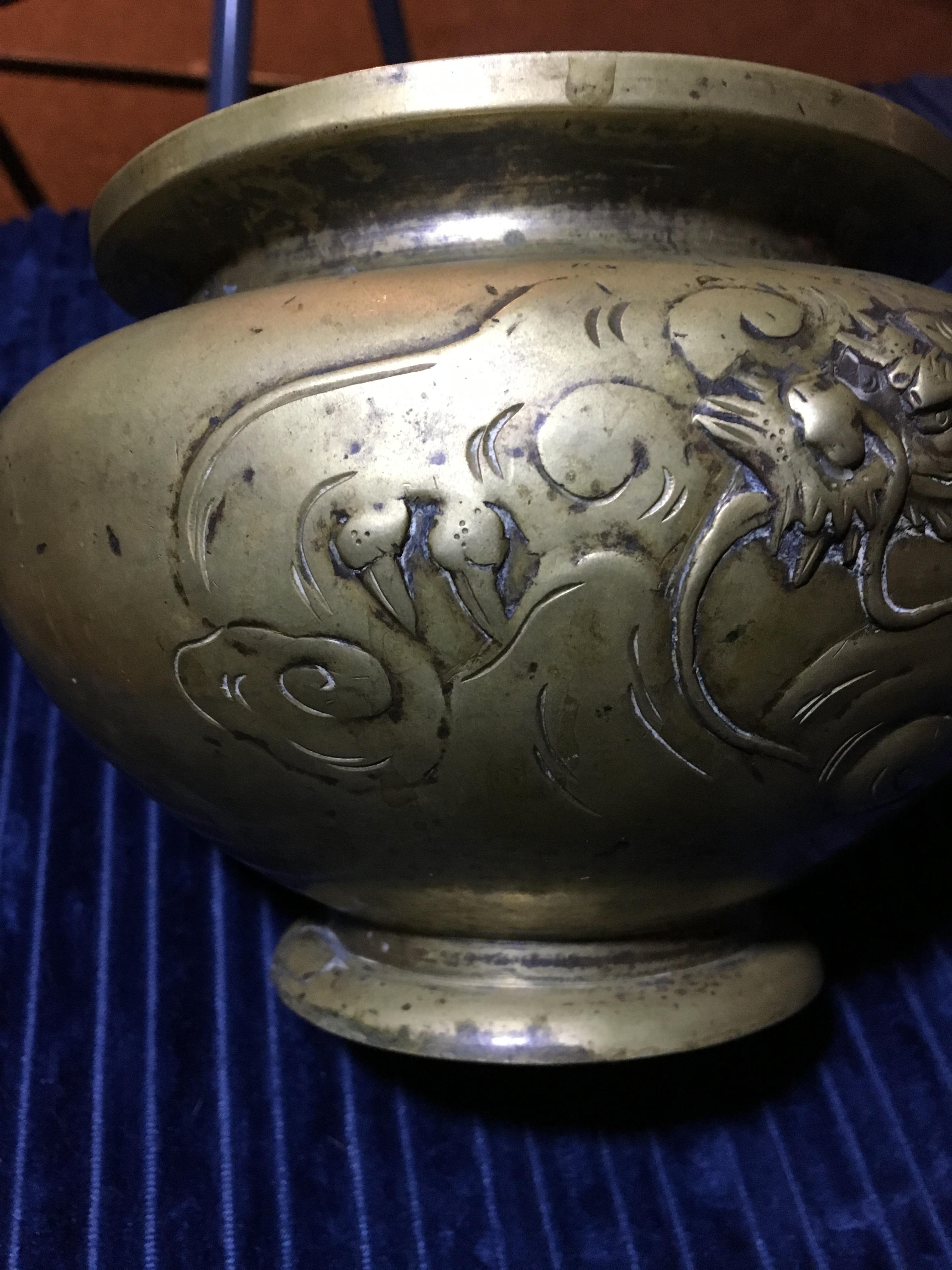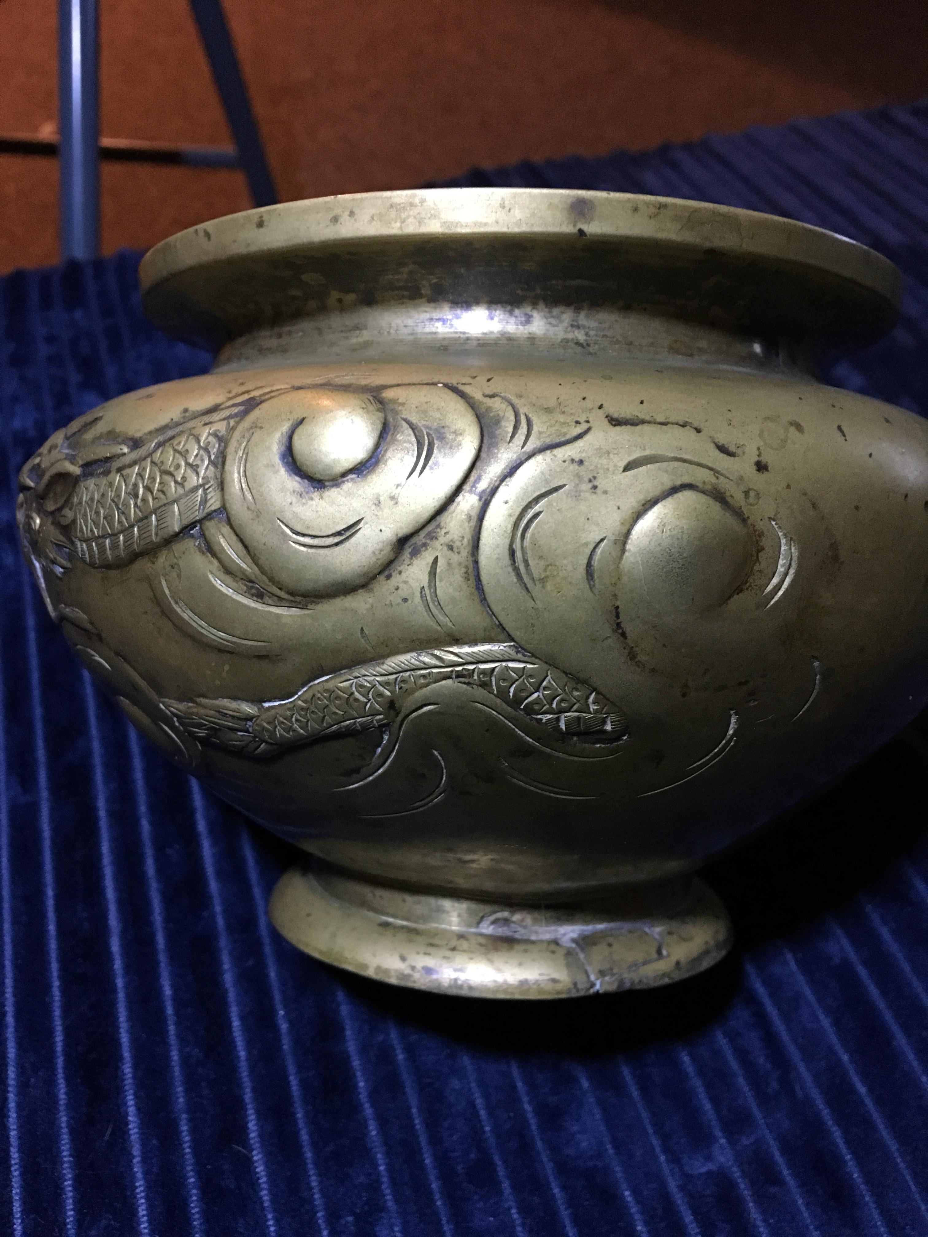 pre 1800s chineese brass or bronze vessel with dragons