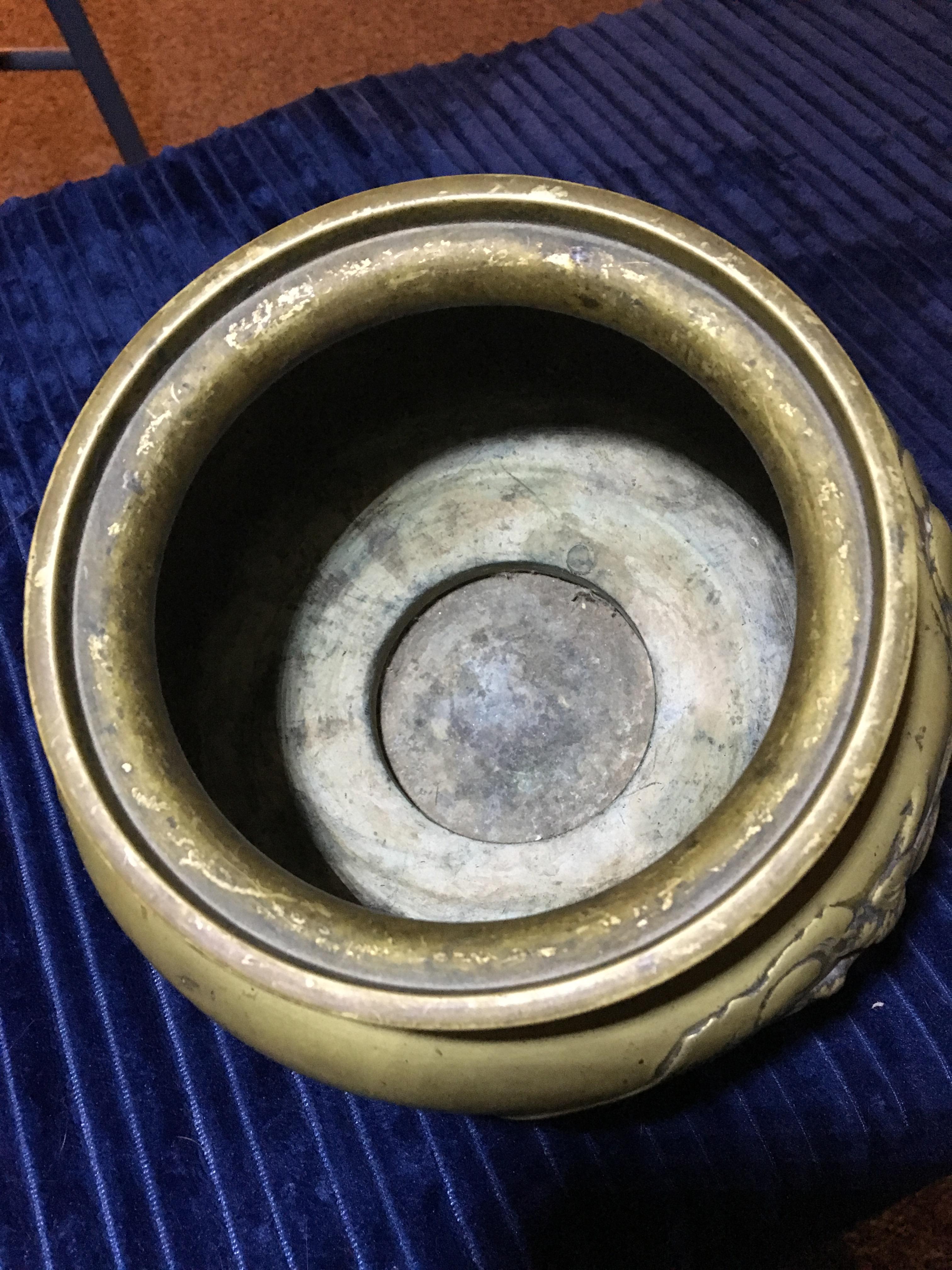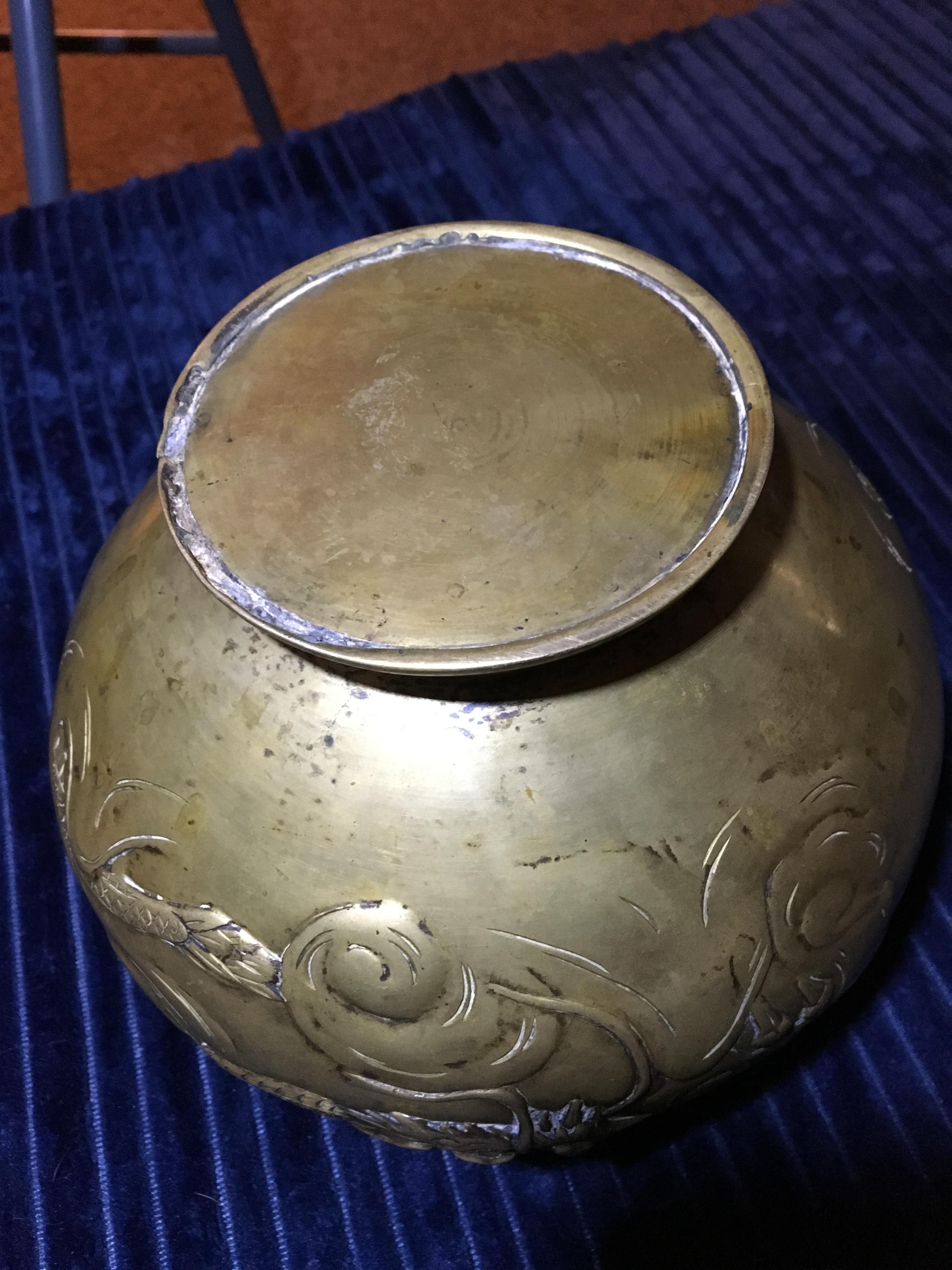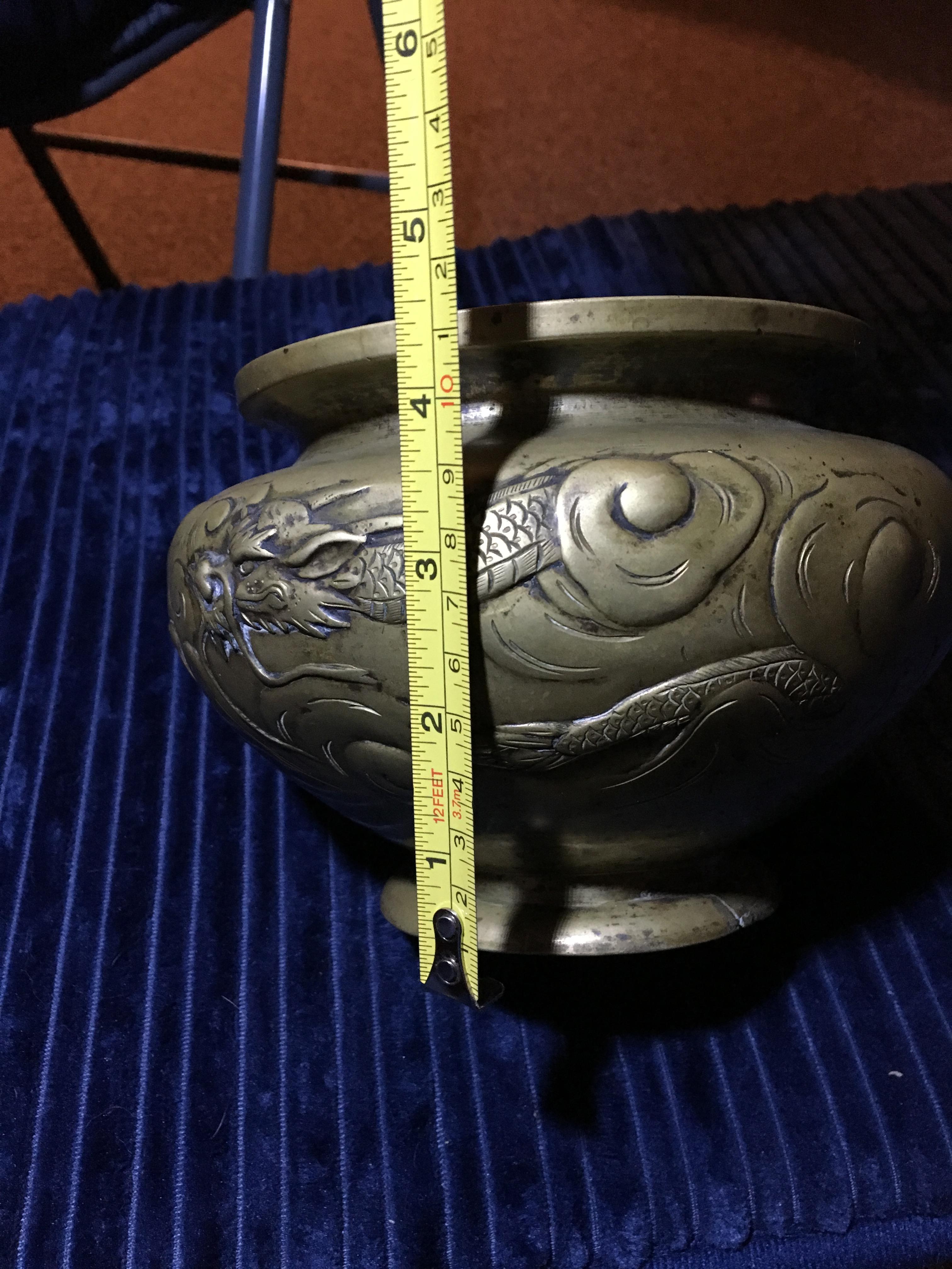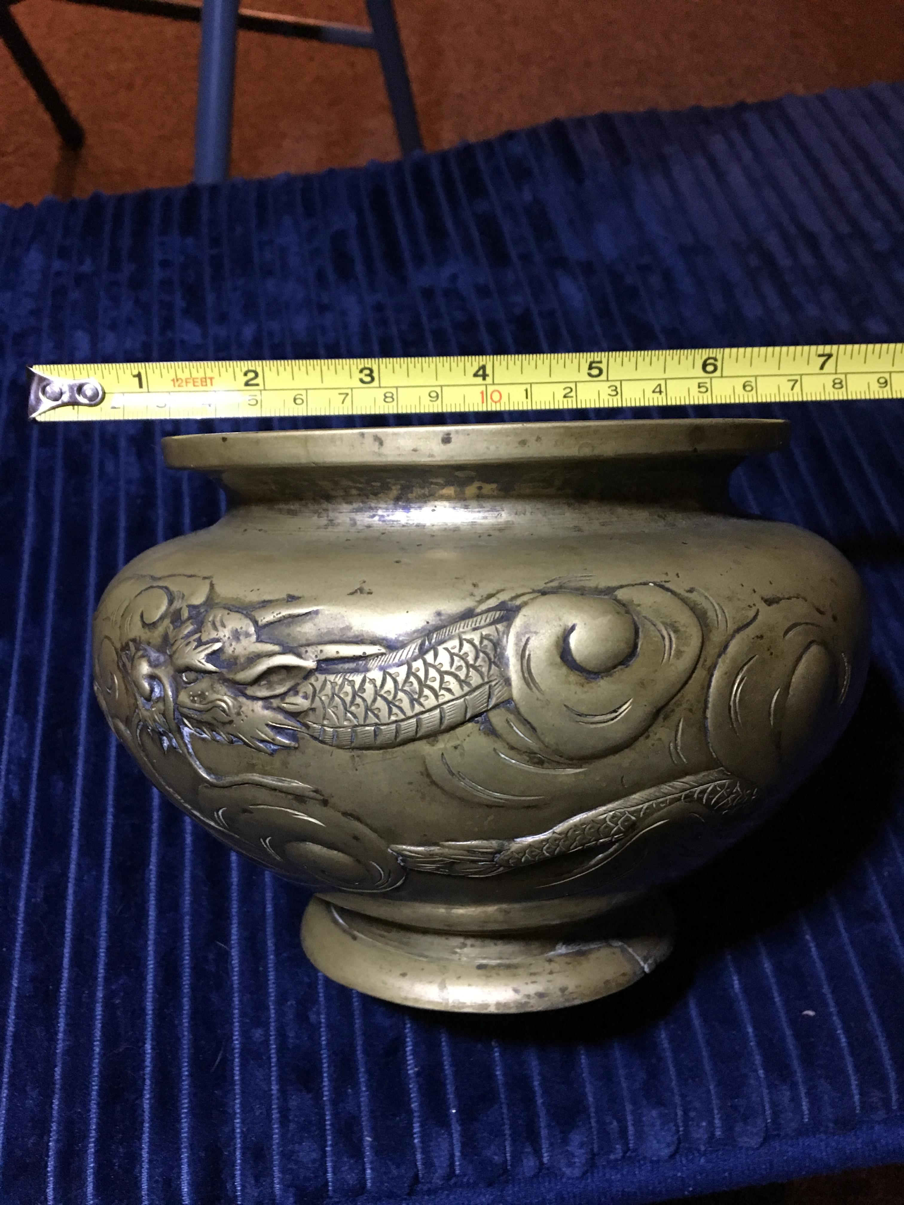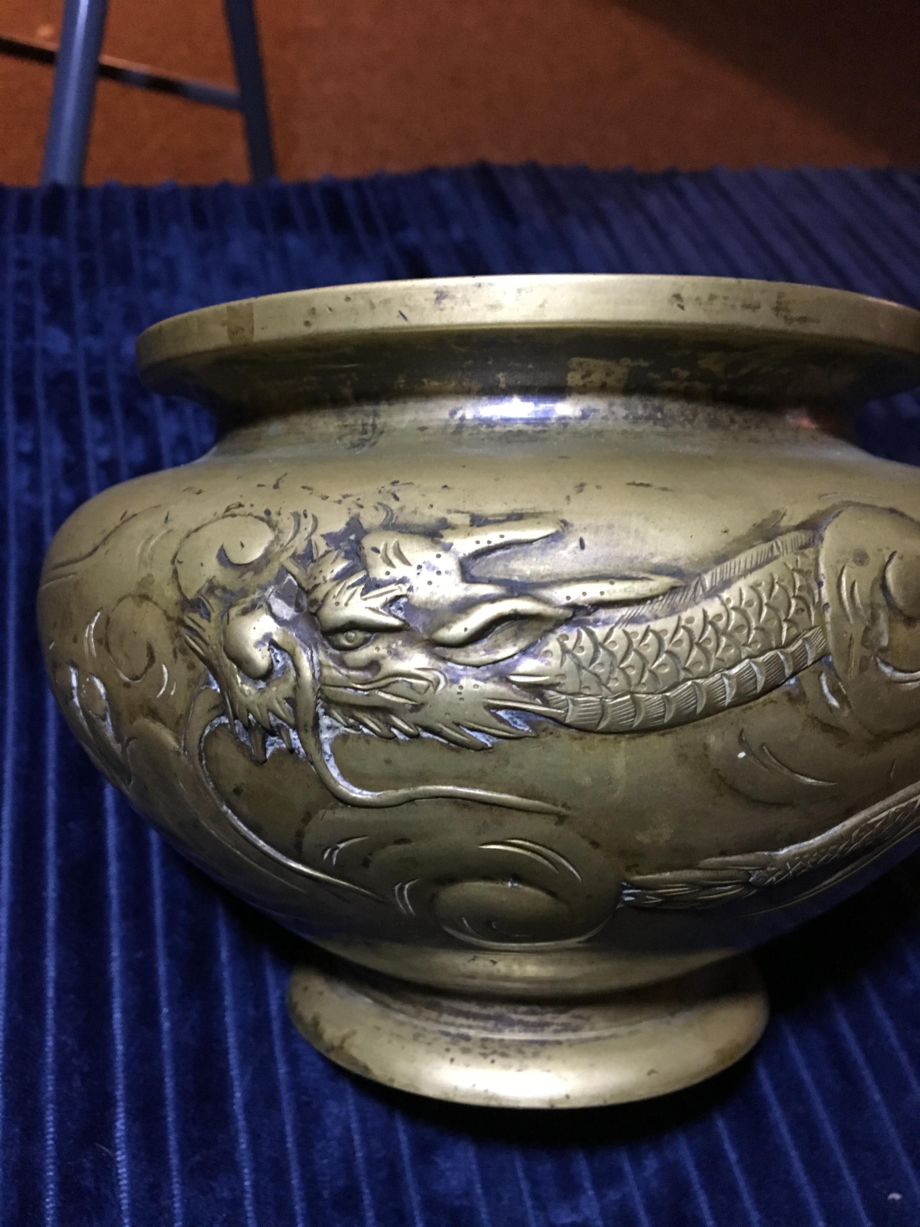 pre 1800s chineese brass or bronze vessel with dragons