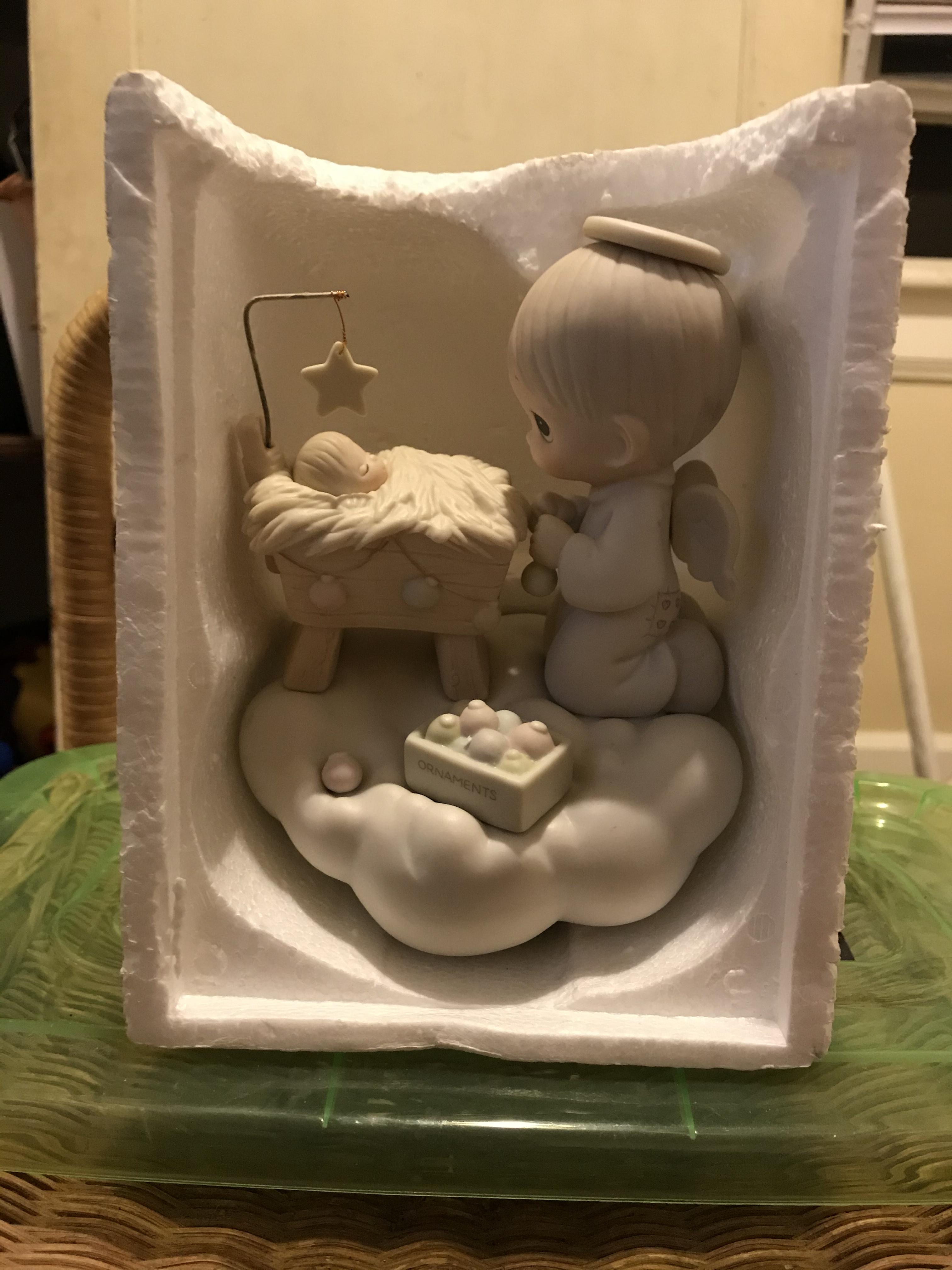 1989 Precious Moments "He is the Star of the Morning" figurine with original packaging. The Baby Jesus figurine isn't attached. Found it amongst some rubbish a few days ago.