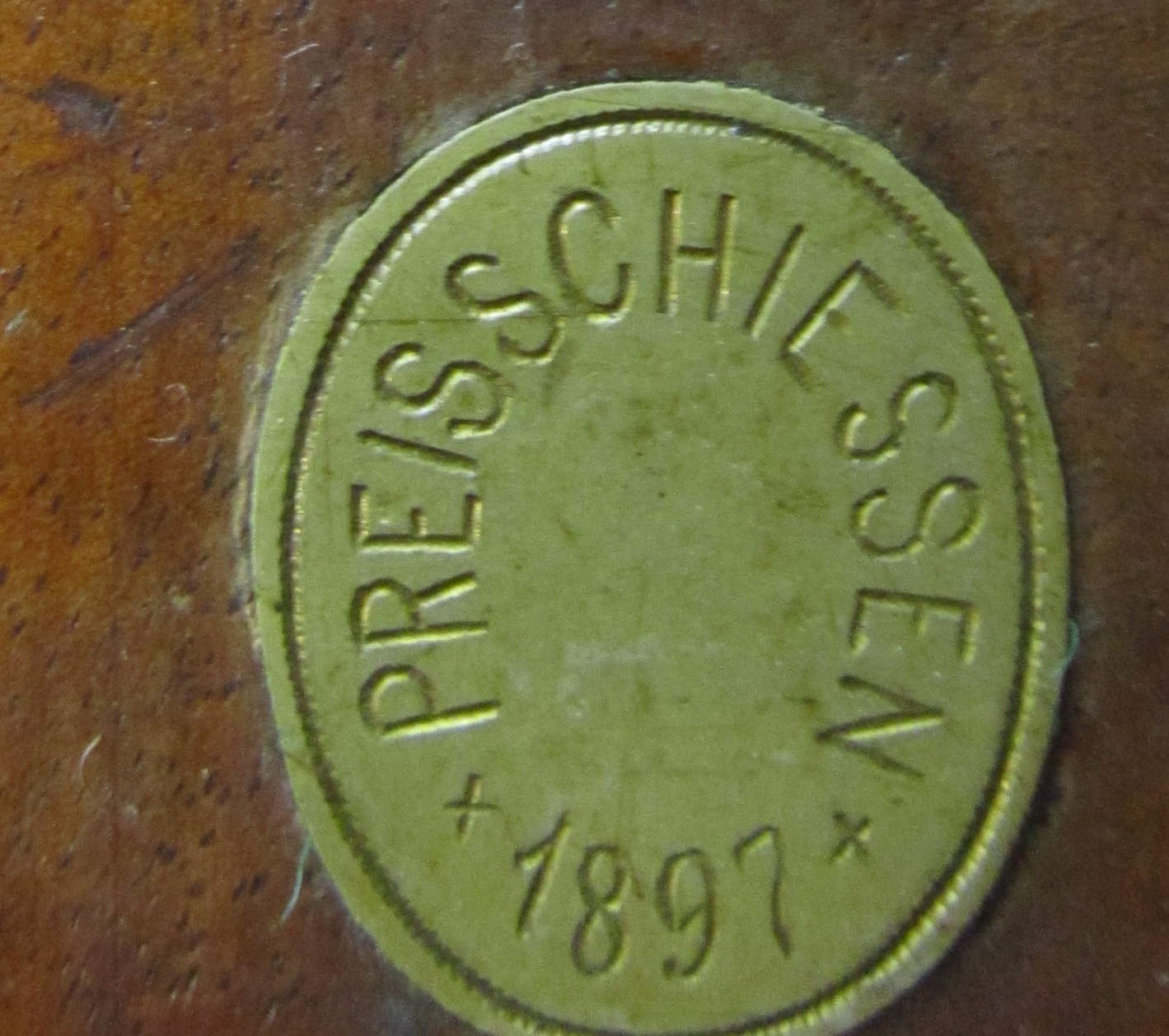 preisschiessen 1897 has metal emblem with buck deer on it