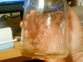 This is a clear glass (no bubbles) mason jar. It has Presto Supreme Mason on the front. Manufactured by Illinois Pacific Glass Corp. Has a glass lid with rubber seal then a screw top metal lid with a see thru top so you can see the glass lid. The lid states delineator home institute endorses. Also states Tested and Approved by the Good Housekeeping institute. Serial 2285.