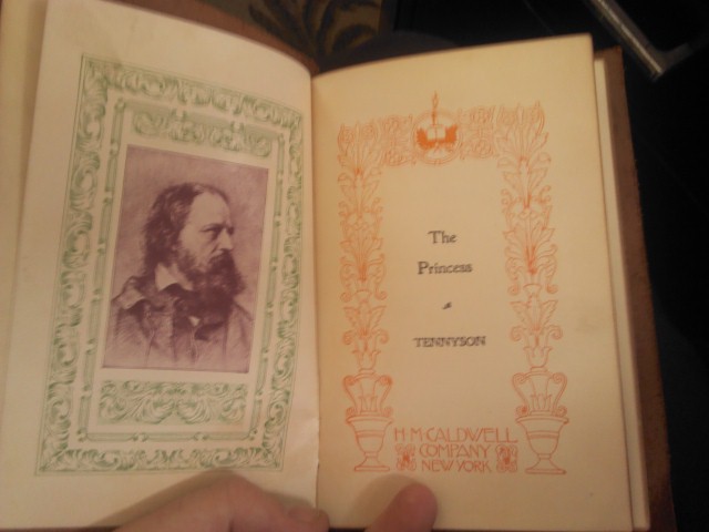 I have an undated leather bound edition of Princess by Tennyson.  The cover has an image of a lady, with a gold gilt frame and ivy around the picture.  it has a red silk bookmark and gold leaf pages.  I was unable to find a date but it was published by HM Caldwell Company NY.