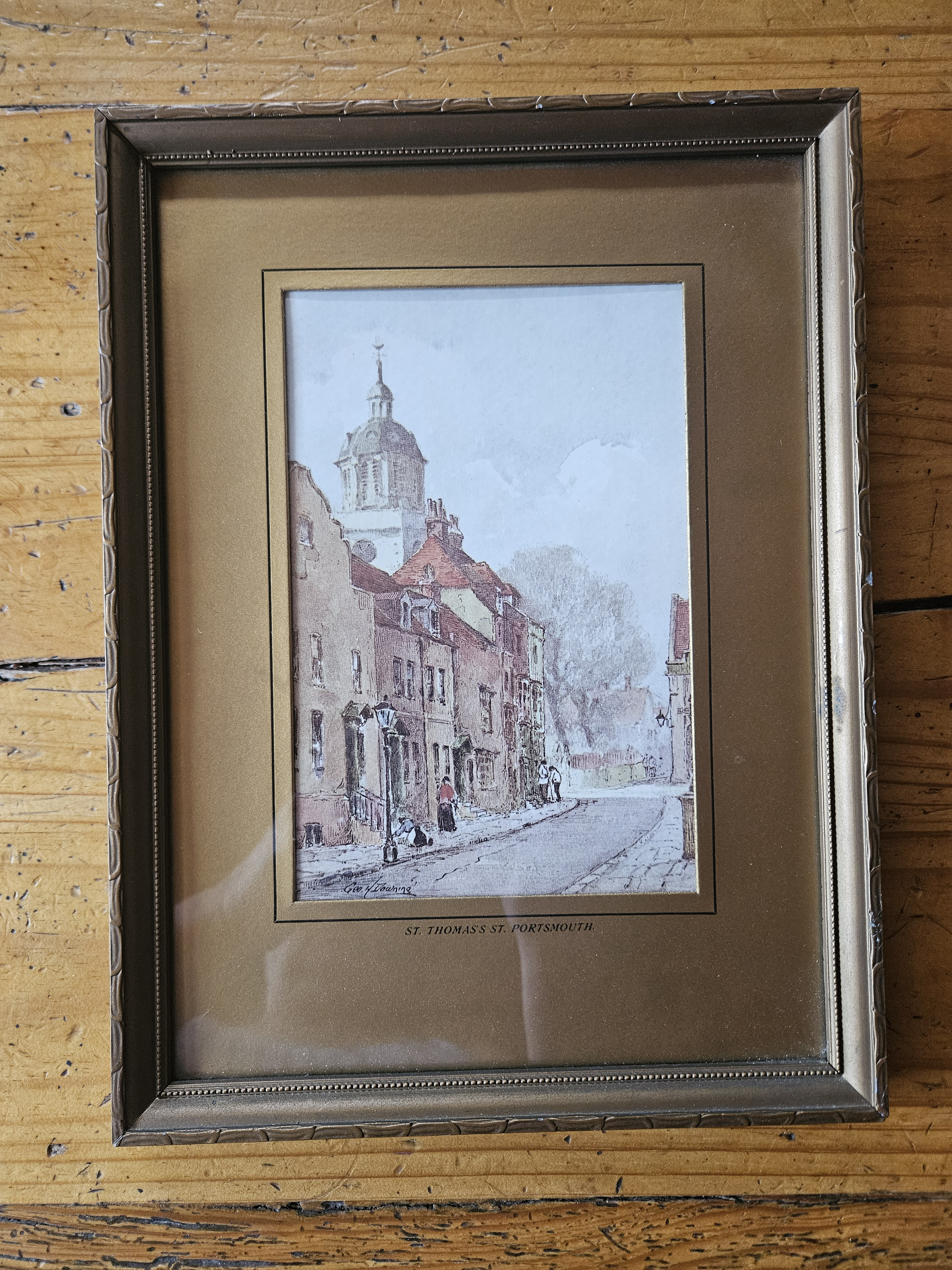 Geo Downing was known for his detailed prints of British urban landscapes in the late 19th to early 20th century. This print captures the essence of Portsmouth, a significant naval port city in England, reflecting the architectural style and street life of the period.