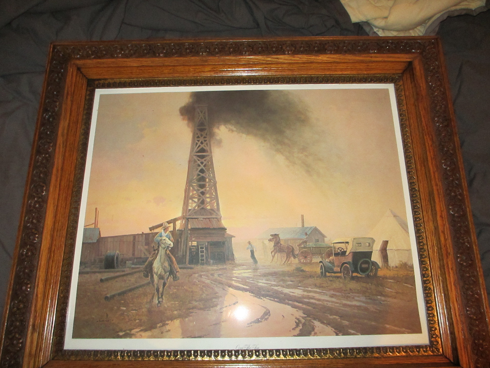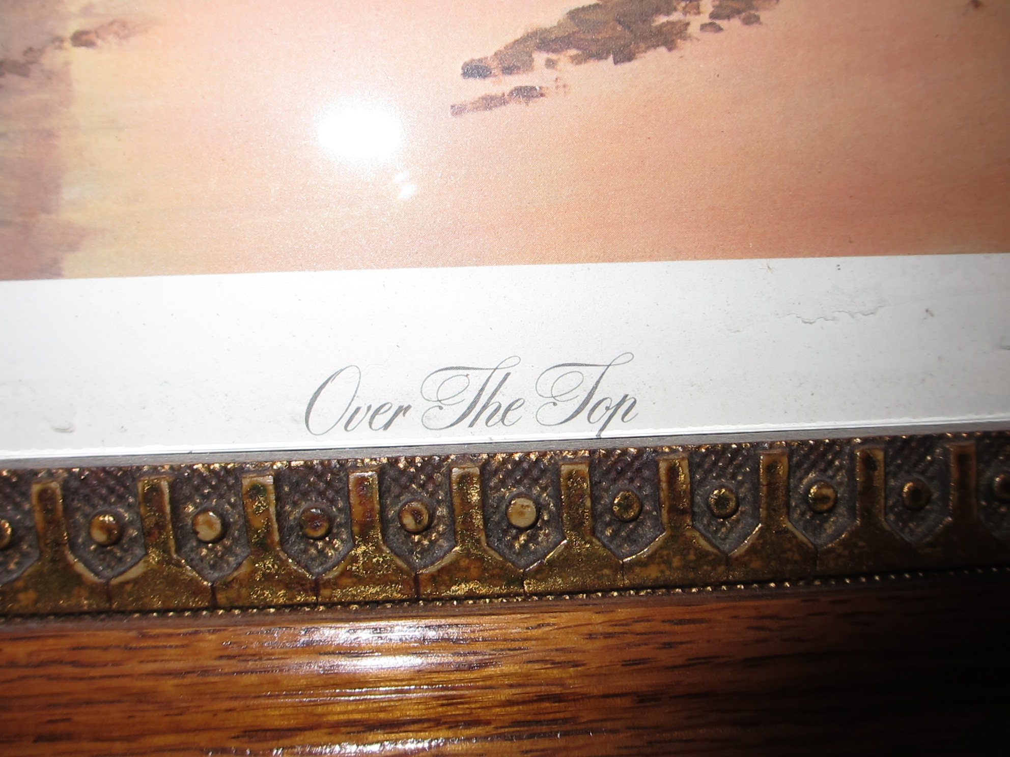 This is a print titled "over the top". I bought it at an estate auction about 20 years ago, for no other reason than i liked it. I paid $275 for it, which was alot back then, and im not sure if it was the print or the frame that ran the bid up that high. Its just been gathering dust so i was thinking of selling it, i cant find anything about the print or the frame online so i joined here to see if anyone could help me.