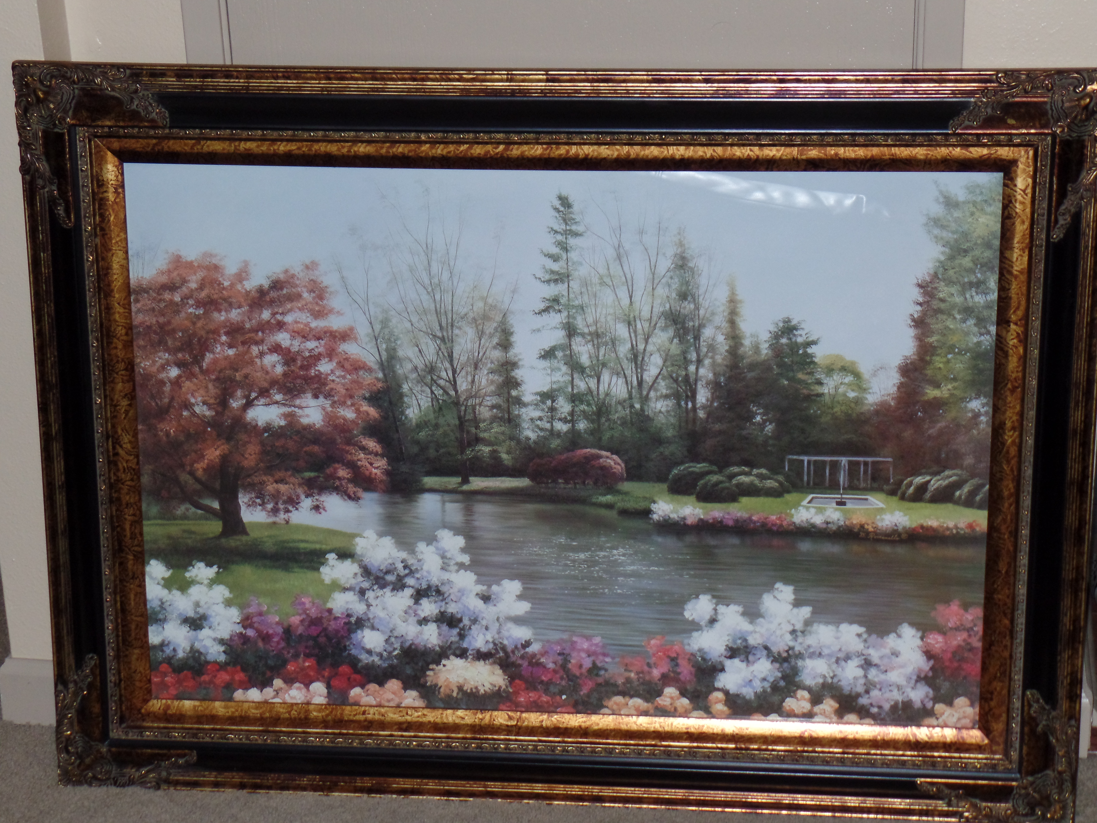 Frames are solid wood with gold accents. They were bought at a Costco art show about 12 to 15 years ago. Please help us appraise these pictures