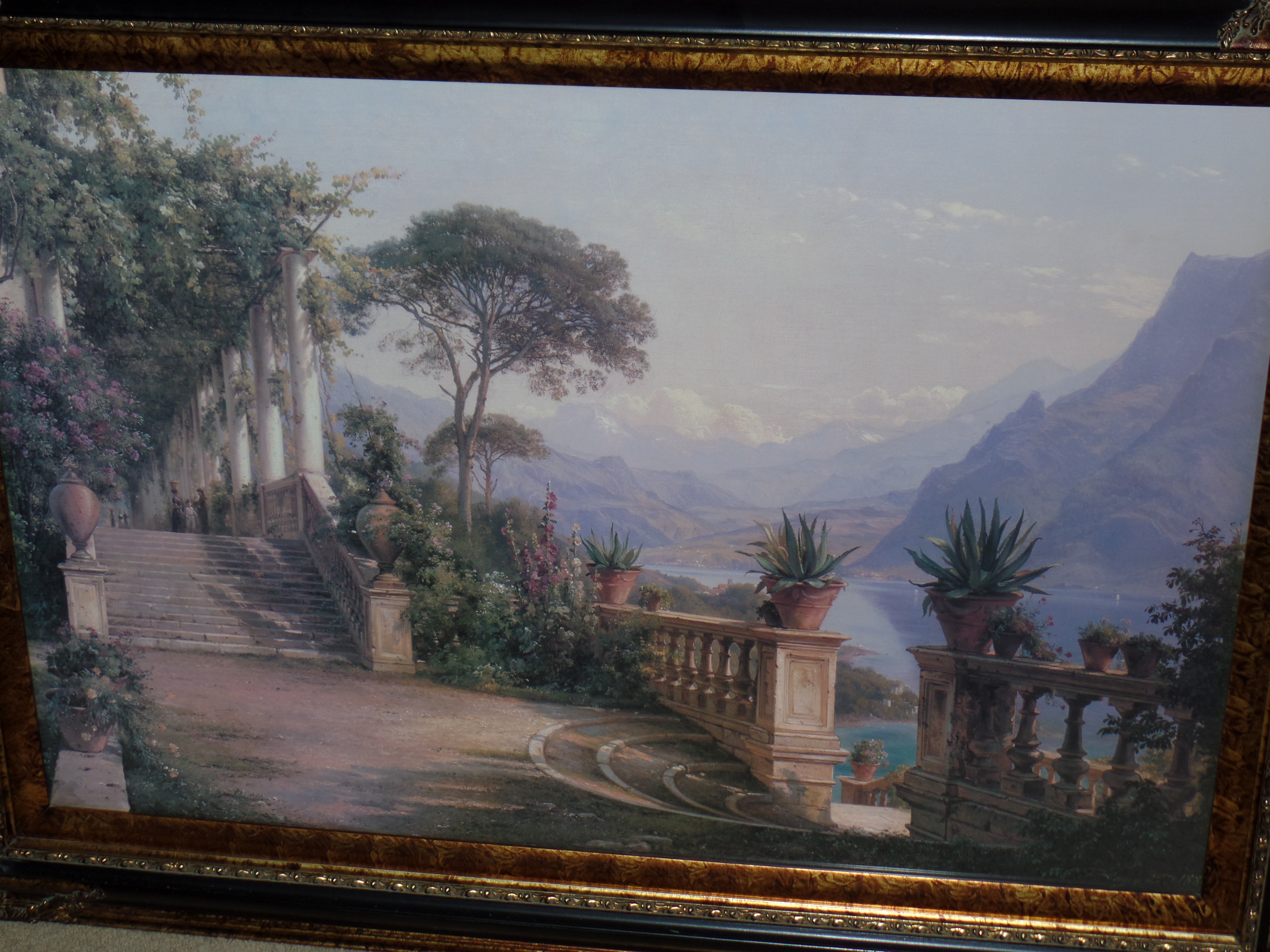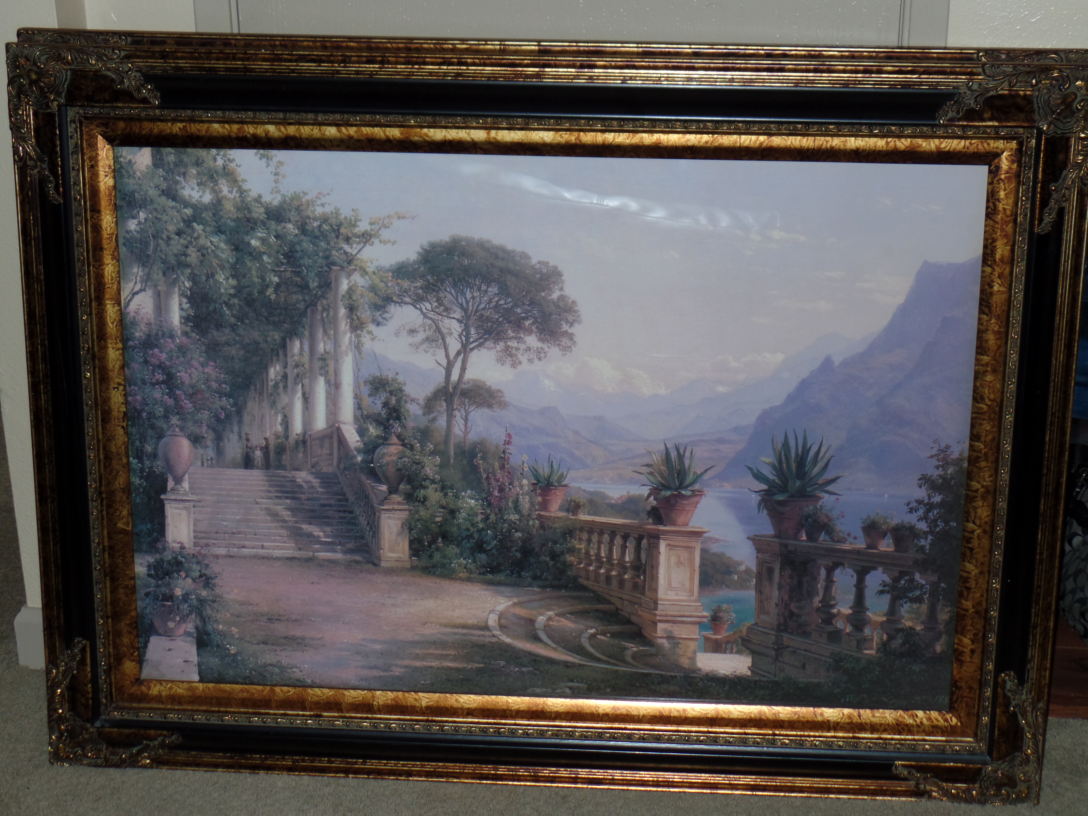 Size of the print is 26x38, with frame it is 32x44, artist is D Romanello