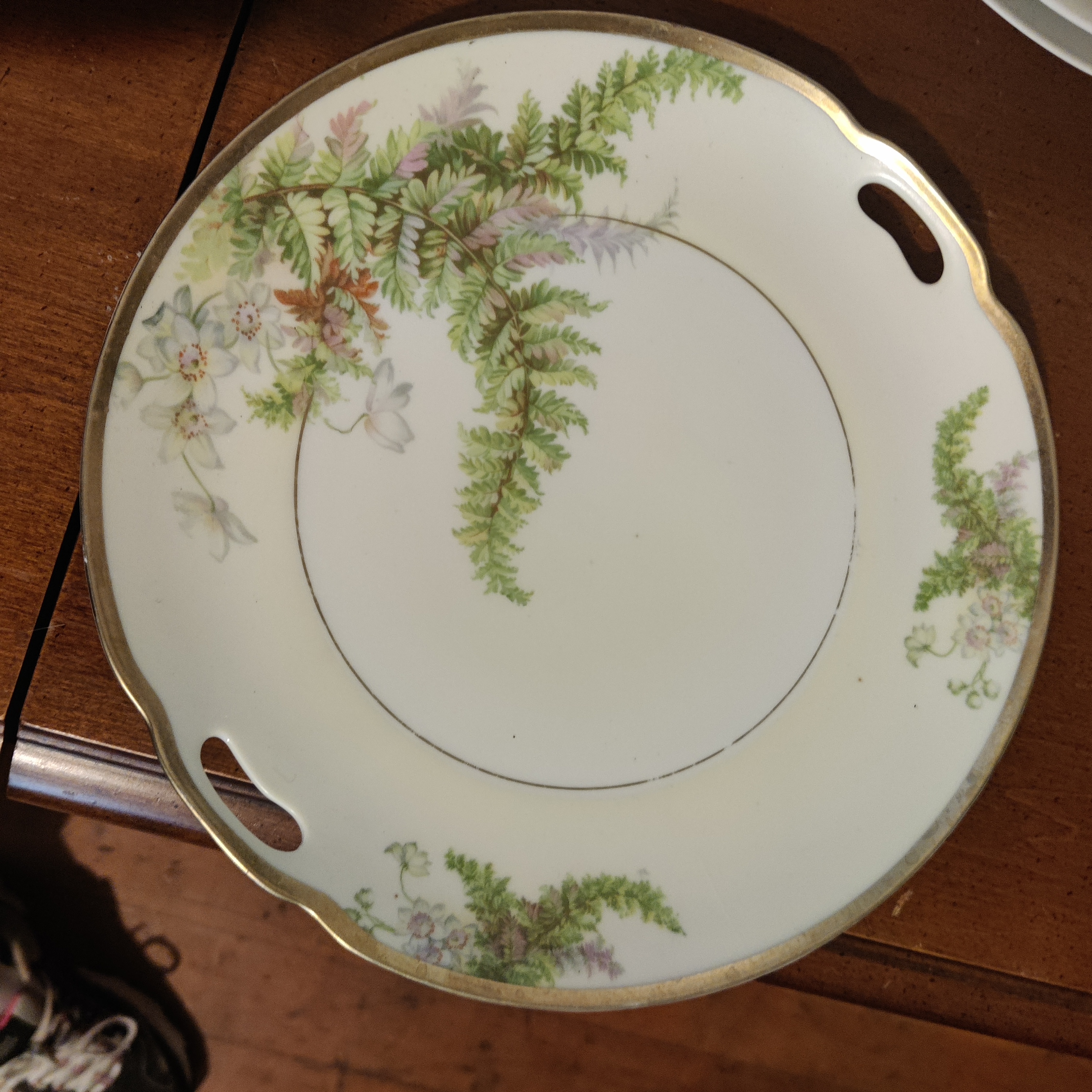 Prussia Fern and Floral Cake Plate 9". Very simple yet elegant and unique. Colors are vibrant but neutral and will fit with any decor. Plate is in great condition, no chips, cracks or crazing.