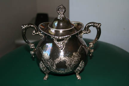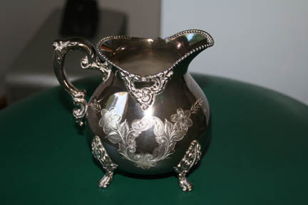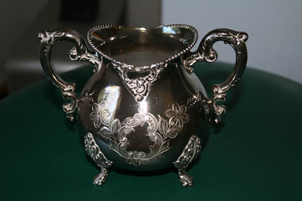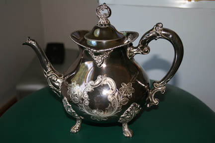 This is a four piece tea service. I don't know anything about it because we recently inherited it. It was sitting on a tray that is not the same maker and i'm also curious about that. On the platter is says W M A Rogers is approximately 12 inches in diameter. All pieces are in good condition however they need some cleaning as they are tarnished. I'm attaching pictures. Any information is helpful.