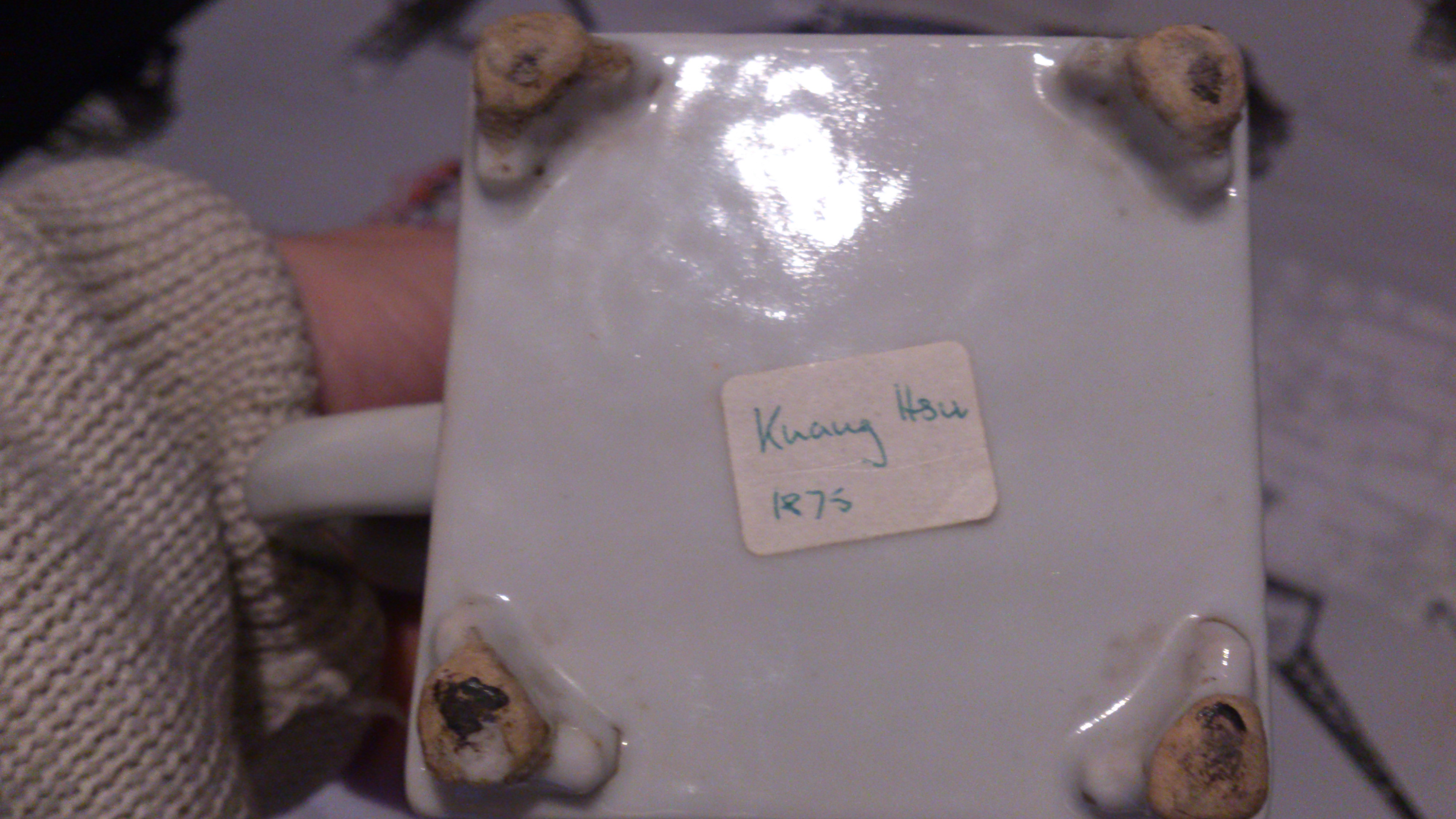 i have recently purchased as part of a job lot a teapot that has a tag saying KUANG HSU 1875.as u can imagine i have no idea about pottery or porcelain and would very much appreciate help on finding out if this is a genuine item or not.it stands 7" tall and has no chips or cracks,which is why im hesitant about its origin,i have tried researching but to no avail for a similar piece online.it is really a lovely piece,it has chinese scribe on the front and back and two pictures on either sides,the pictures are of a man in a garden and a man playing the flute sitting in front of a red sun in the horizon,it also looks like an animal (not sure) is sitting by his feet in front of a bowl of fruit,again im not sure,pictures will be available to see.thank you in advance for any help that i receive,im looking forward to finding out about this piece