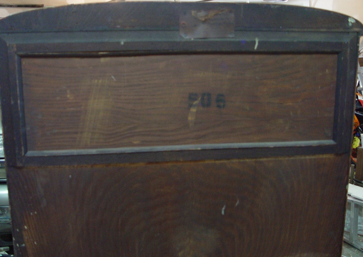 I know it was at least my grandmother's and it may have been my greatgrandmother's. I am 64 years old. so it's at least 100 years old. It's in great shape and no repairs, all original glass. There are a few markings. on the back there is a stenciled number 506. there is also the tag from shipping on it from New York. there is also a number 13 on the inside top of the door and on the side jamb near the top hinge.