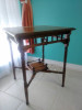 Quarter sawn oak oval coffee table, formerly a library table cut down to 18" tall. Table top measures 54" long and 32" wide.