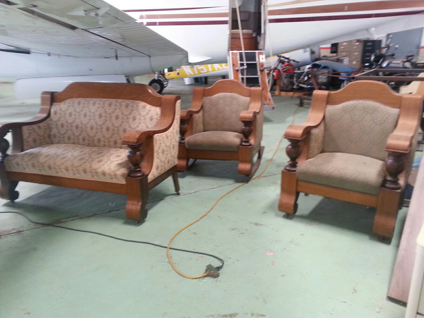 This is a 3 piece quarter sawn oak parlor set with sofa and two chairs (one of which is a rocking chair). I personally refinished the wood & had the springs recoiled, and all three pieces reholpstered. I don't know where the furniture originally came from as it was give to my husband & I by his father over 20 years ago. It is very heavy with wide arms and back. It is in excellent condition other than needing a good cleaning as it hasn't been used in years & has been in storage. I would love to sell this as a set but have no idea what the true value is. Any information on pricing would be greatly appreciated!