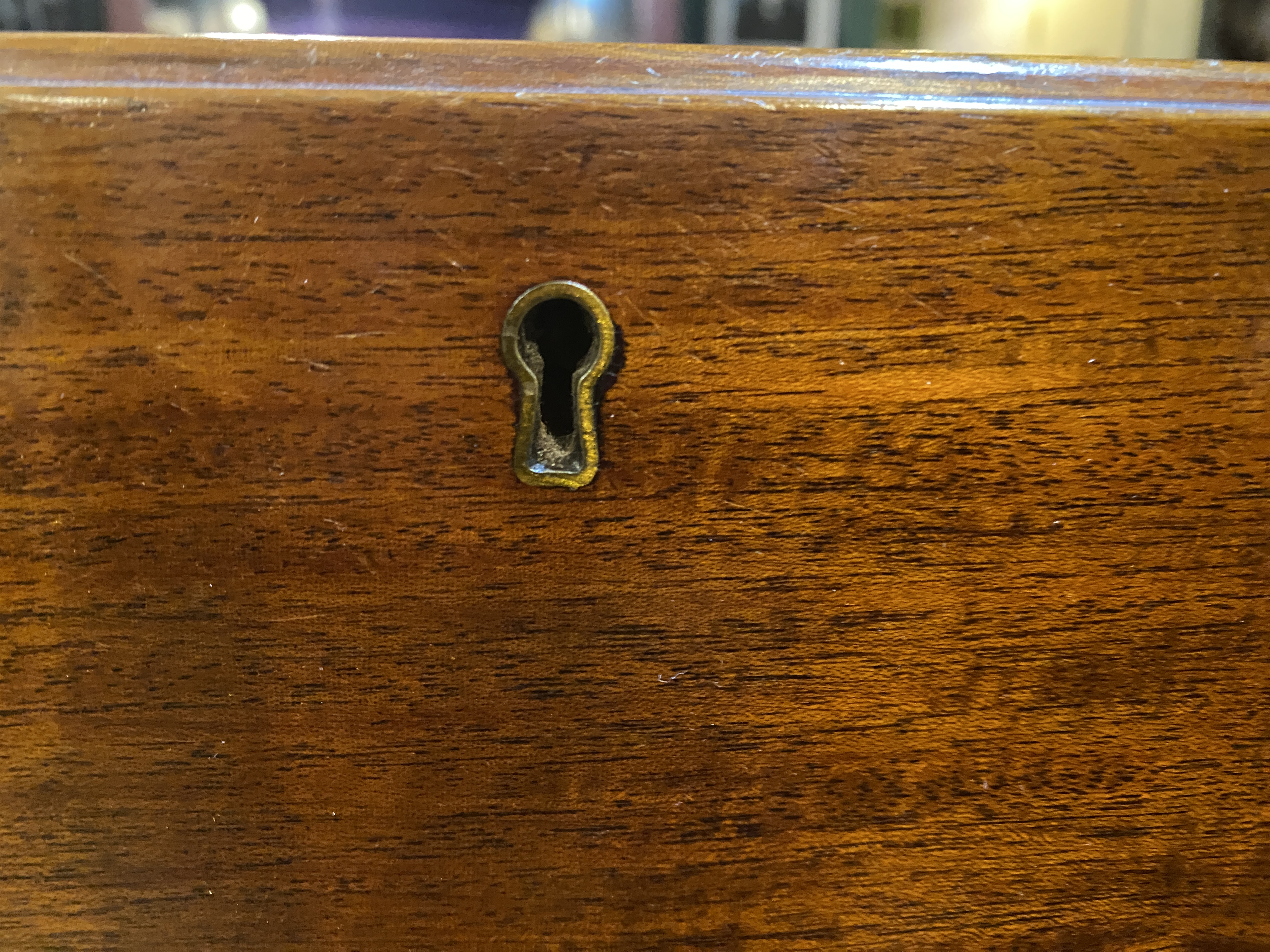 This belonged to my grandparents and was given to me by my parents when they moved. Other than that my grandparents owned it I have no idea of where they obtained it from or how old it is, etc. I have looked at every inch and cannot find a maker’s mark or label. I am not knowledgeable enough about furniture to make a guess as to age or what the wood is but it is very well made and appears to be quite old. I know there are very good reproductions and that this style had a resurgence at one point. My grandparents were both from New England and my Grandfathers family was from New York State originally.