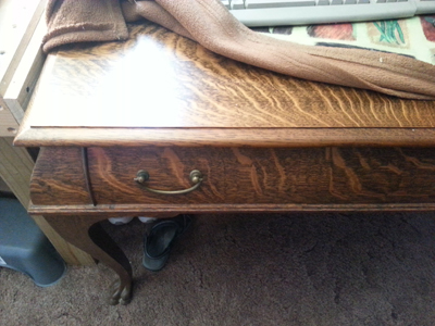 i have a queen anne table that seems to hold period. it has cabriole legs with paw feet . seems to be hand saw. possibly hand made screws and brass rivets. made of solid oak even the secondary. has chisel marks and wood is uneven in width [slightly]. has wooden dowel and mortise tennon joints on drawer. hardware also looks period