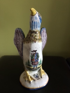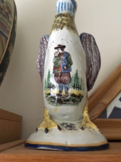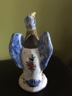 Quimper Falcon vase about 6.5" tall. No markings but appears to be hand molded and hand painted.