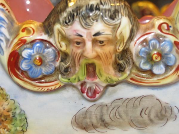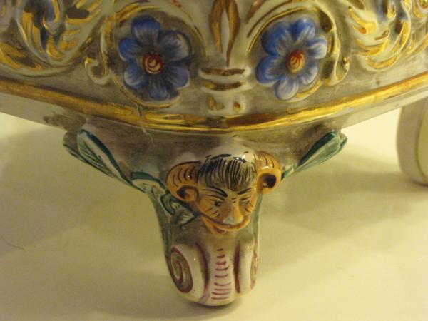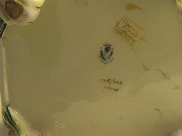 Please see pics and they don't qute do this piece justice... My lighting is not that great. So Sorry. This has a light rose pink interior and has a lot of gold trim.