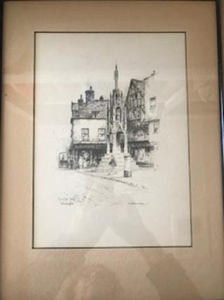All in the same frames with a sticker from Barnes Fine Arts 1226 Connecticut Avenue Washington, D.C except 1 the City Cross Winchester has the same frame and mat but the sticker is from Woodward & Lothrop Art Pictures and Picture Frame Dept WAshington, D.C. They appear to be 30-50 years old or more, not sure. Would like to know the value of these.