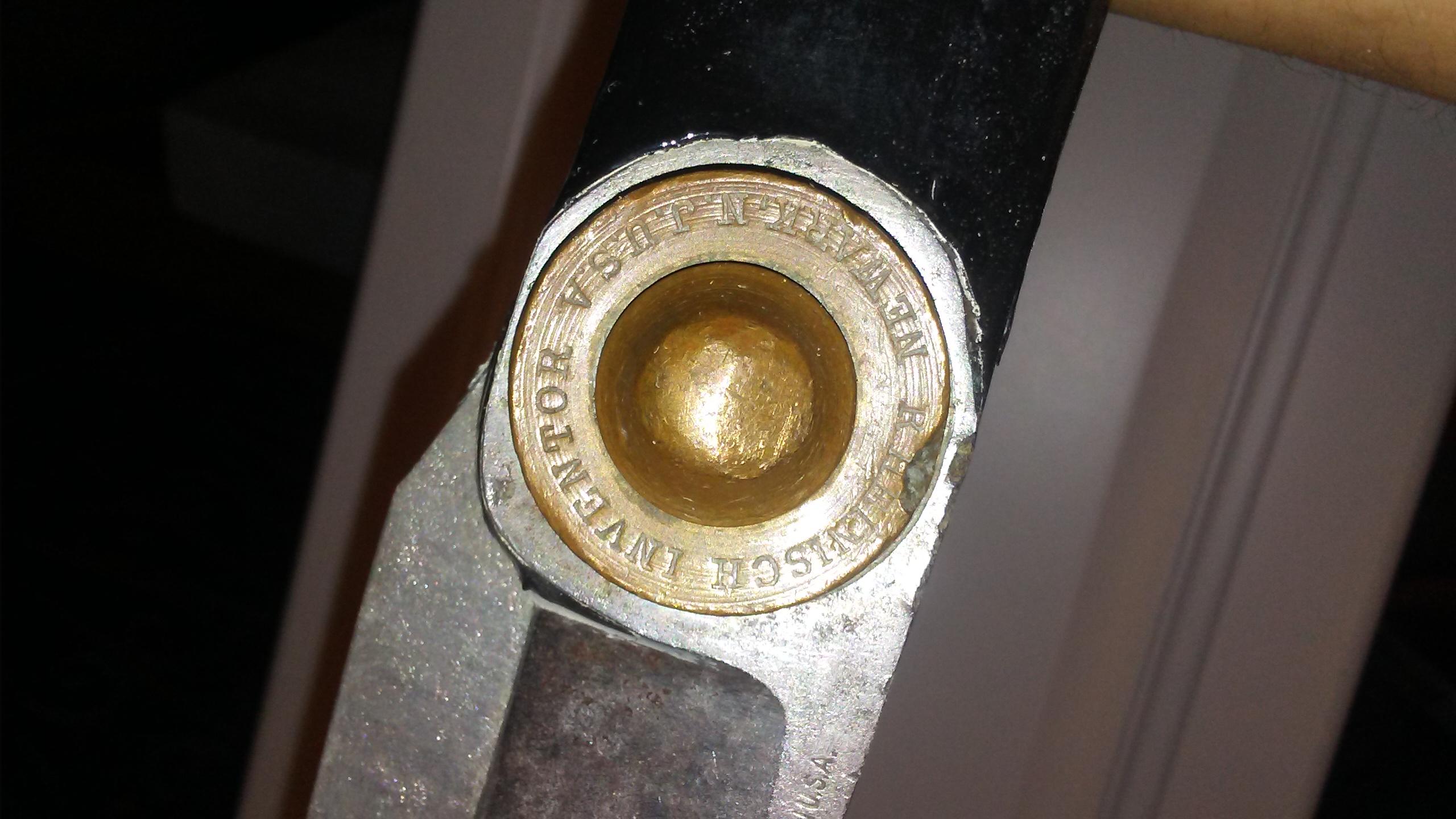 R. Heinisch Inventor Newark, NJ on brass and R. Heinisch on blade and I think 15 on the inside side of blade under brass bolt area