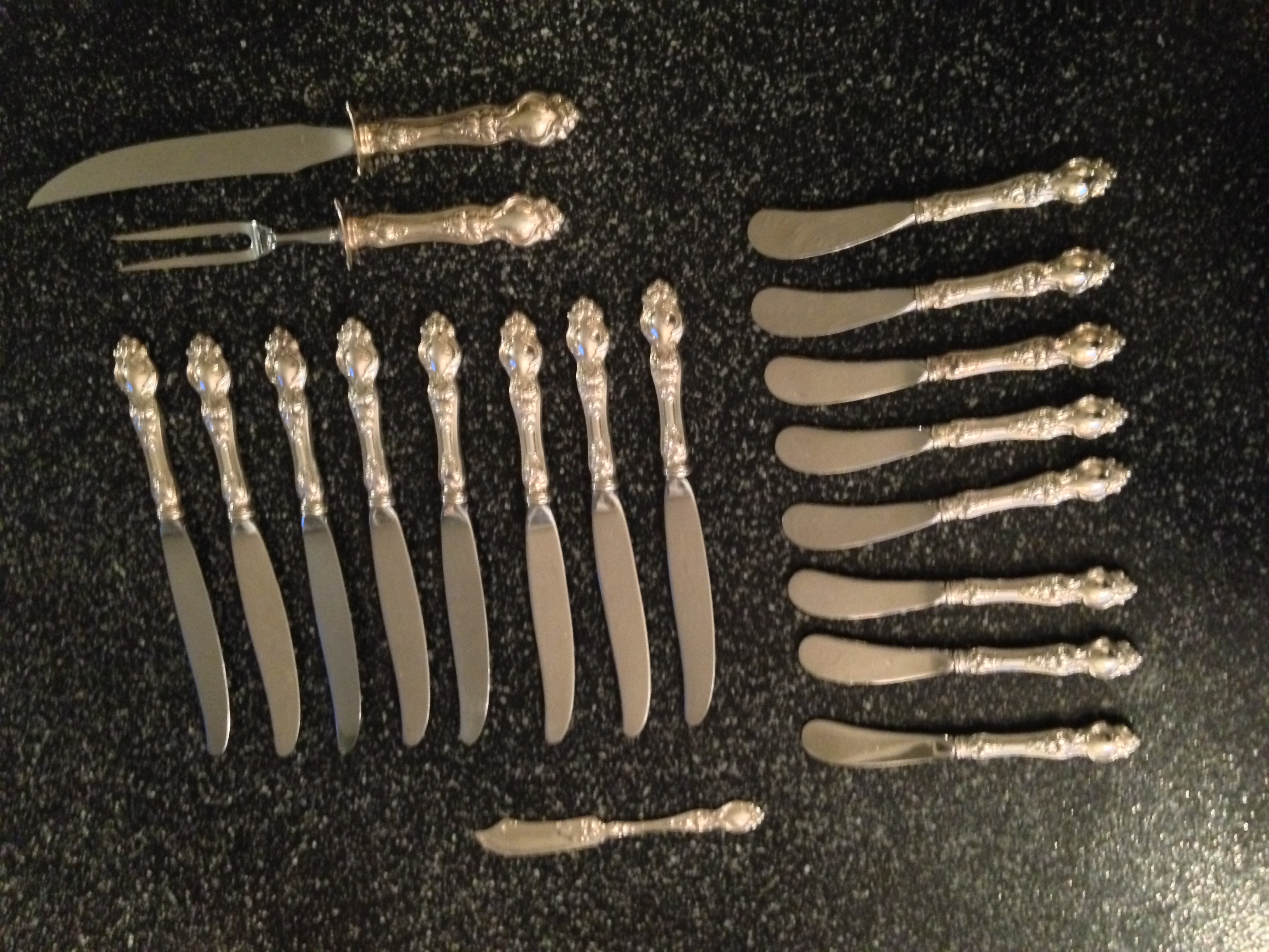 The knives have sterling stamped on the handle although it is tricky to see.