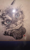 Rabindra signed, Raccoon Face & paws with large red dot in paws. 27" X 22". Framed & mat used, with glass cover.