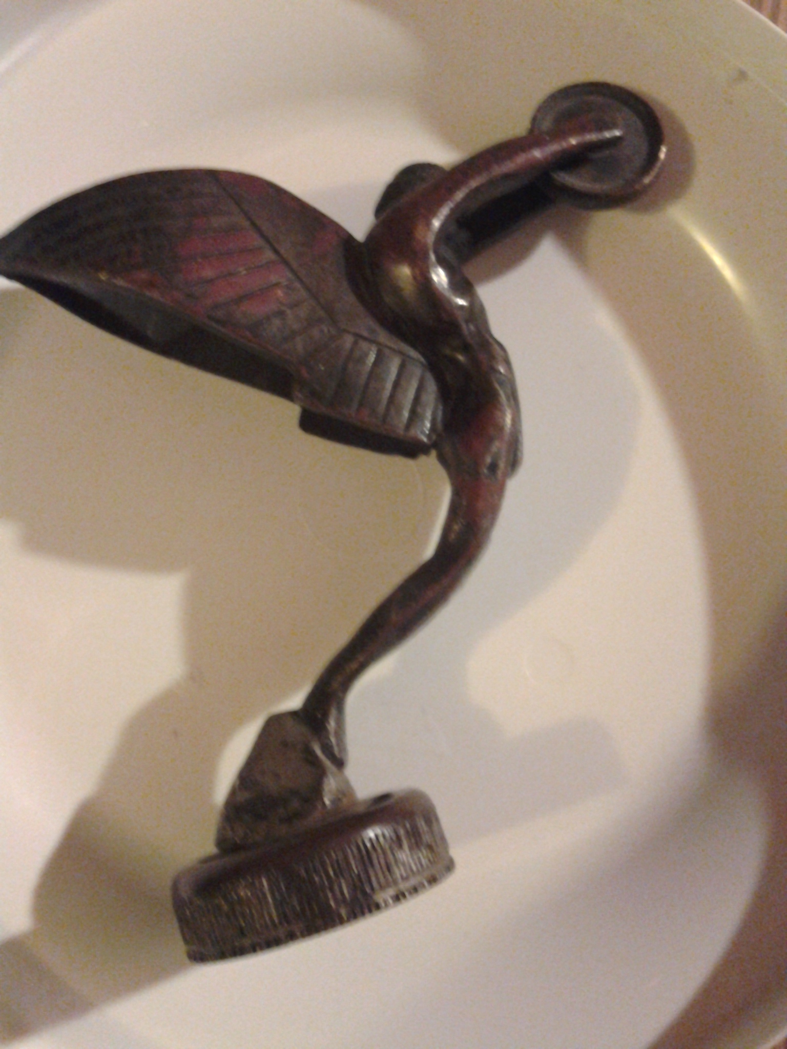 This is a winged,flying man, some think it came off of a 1930's ish Packard but I dont think so, It is a man and Its a radiator cap heres the pics. Please Help if Yall can.