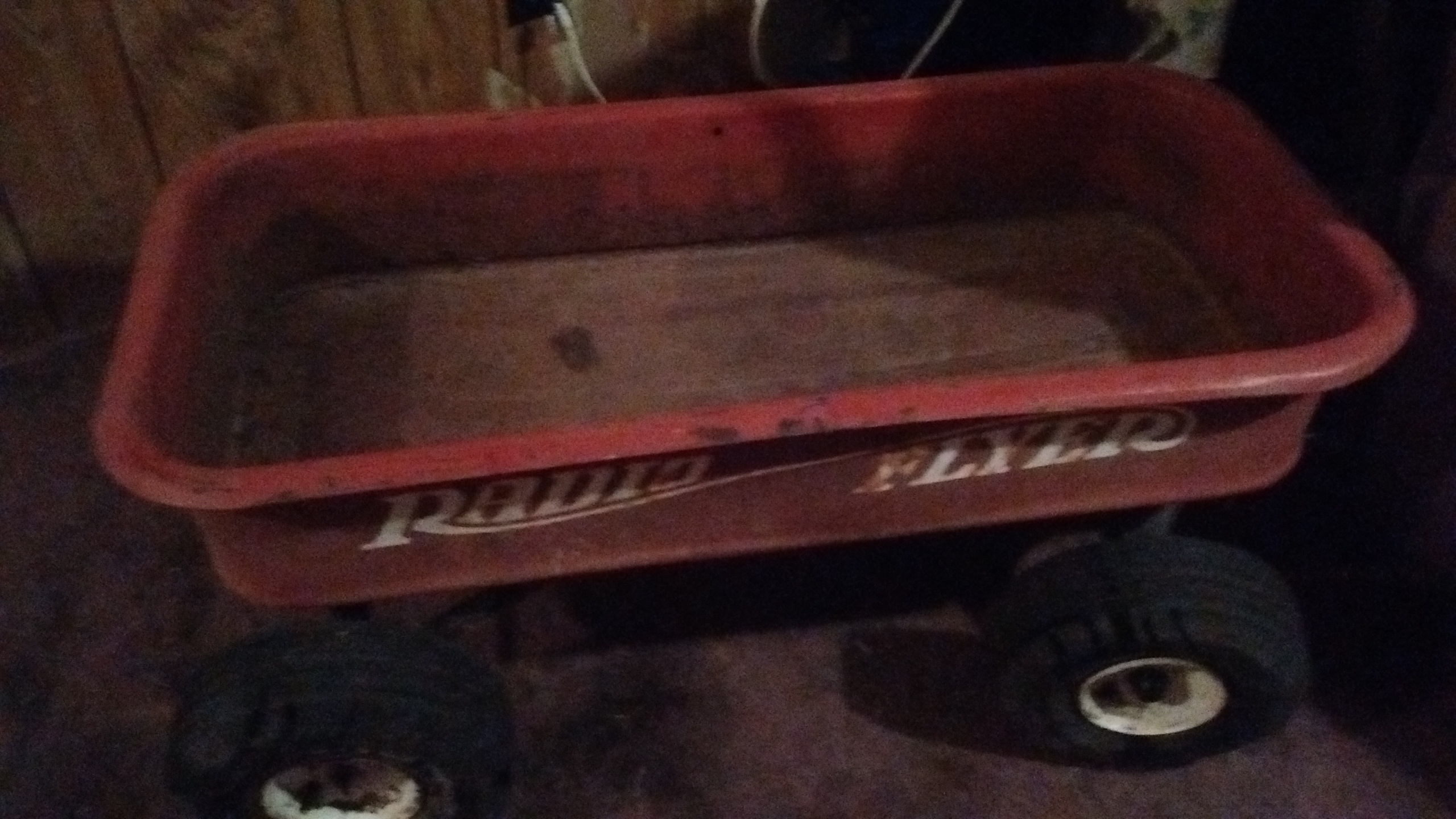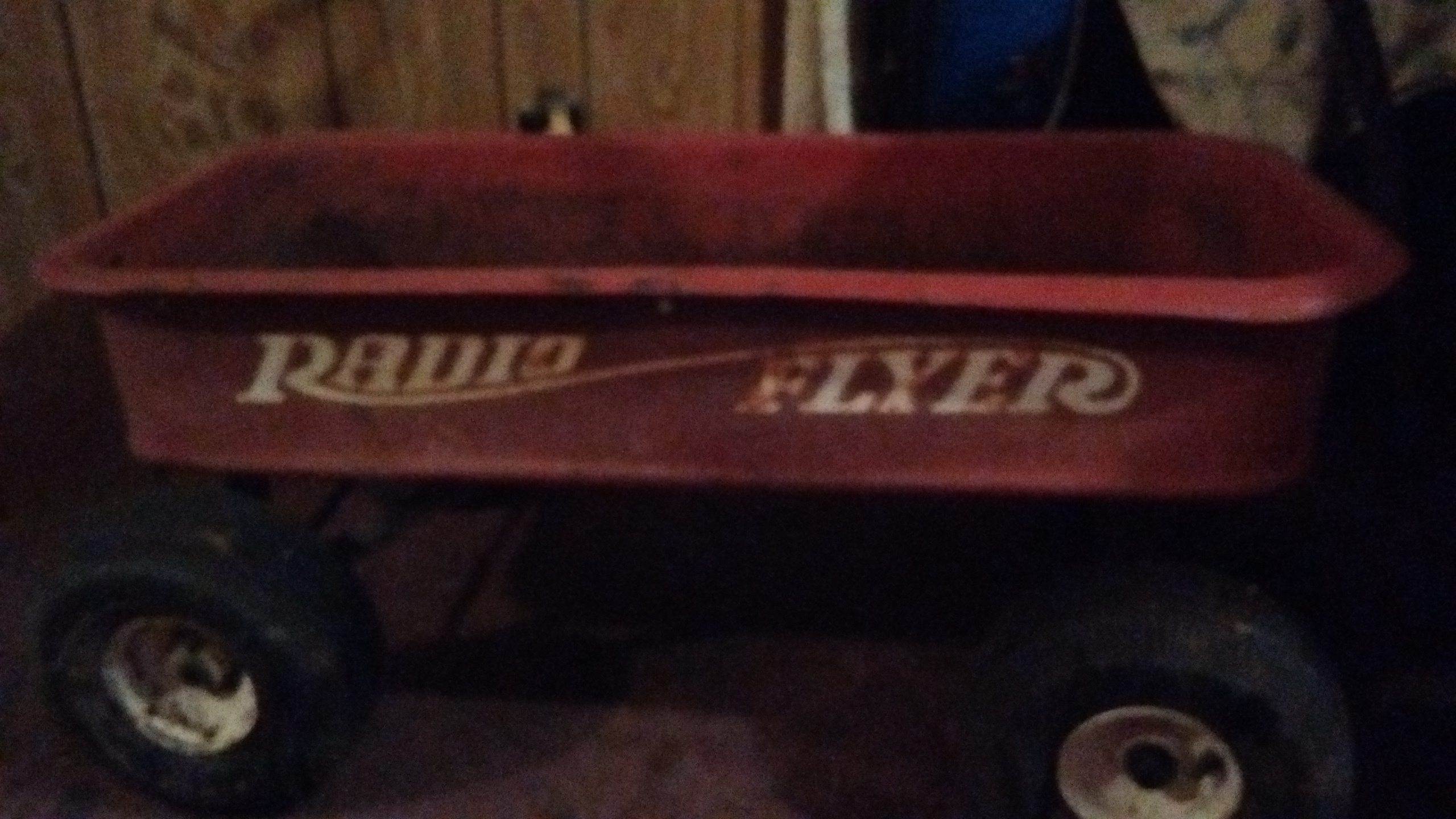 Radio flyer wagon with tires that are filled with air. In fair condition. Still has original paint. Would like to know year it was produced and approx value