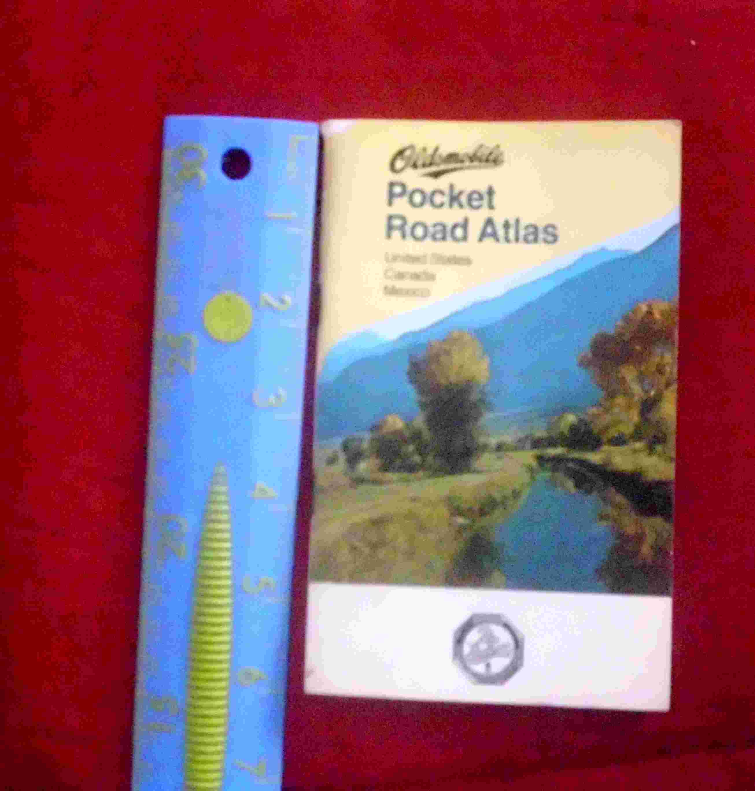 Rand McNally Oldsmobile Pocket Road Atlas featuring maps from US, Canada and Mexico. Has Oldsmobile logo on the bottom of the cover. ISBN 0-528-24484-1. I want to know how old it is, there is no copy right date on it. There is a little use on the upper left corner of the cover.